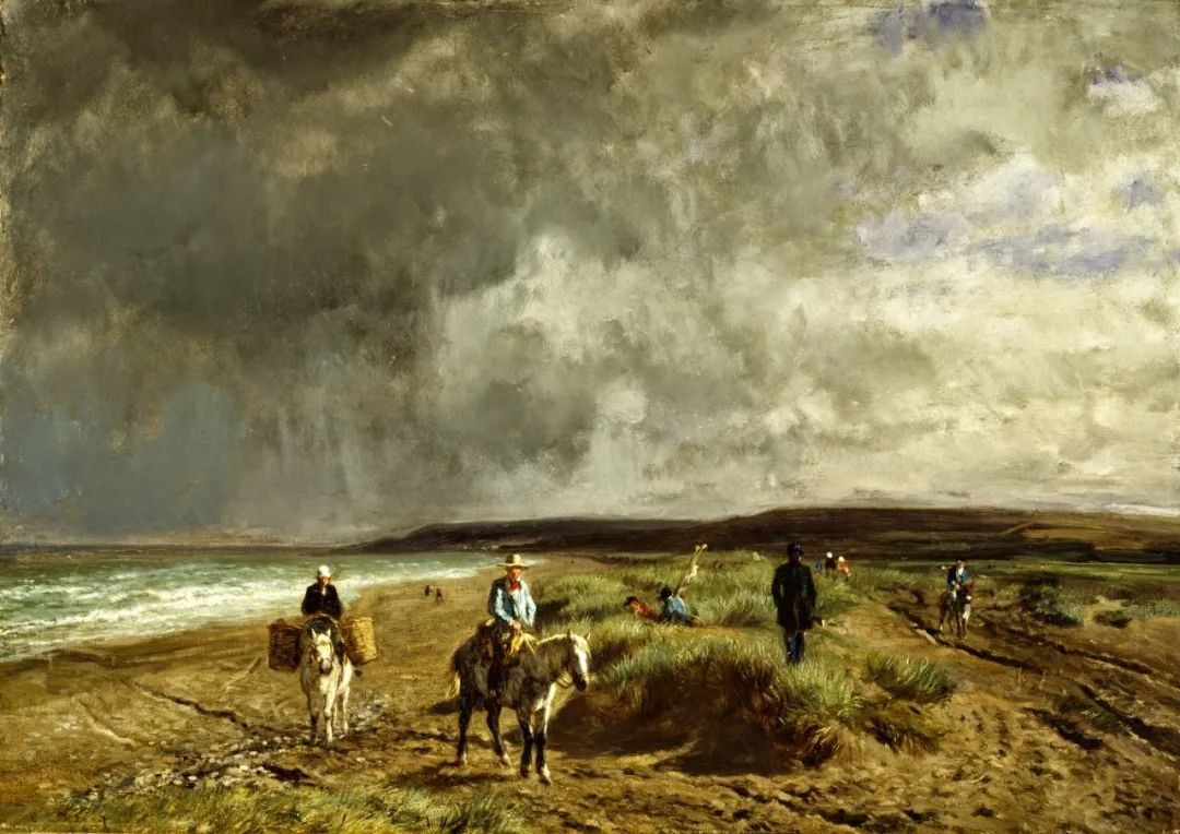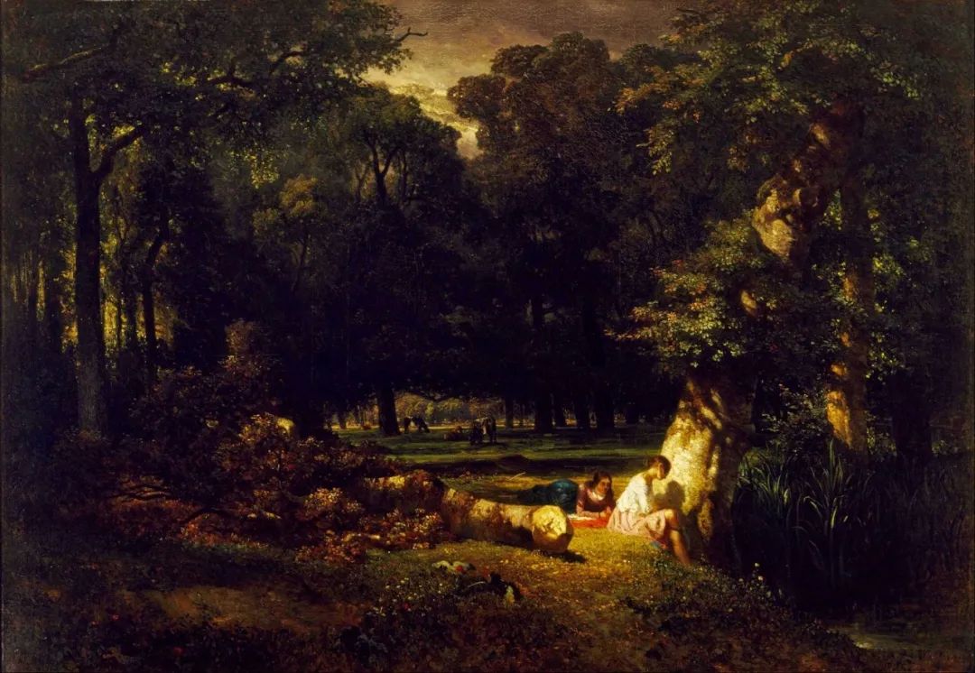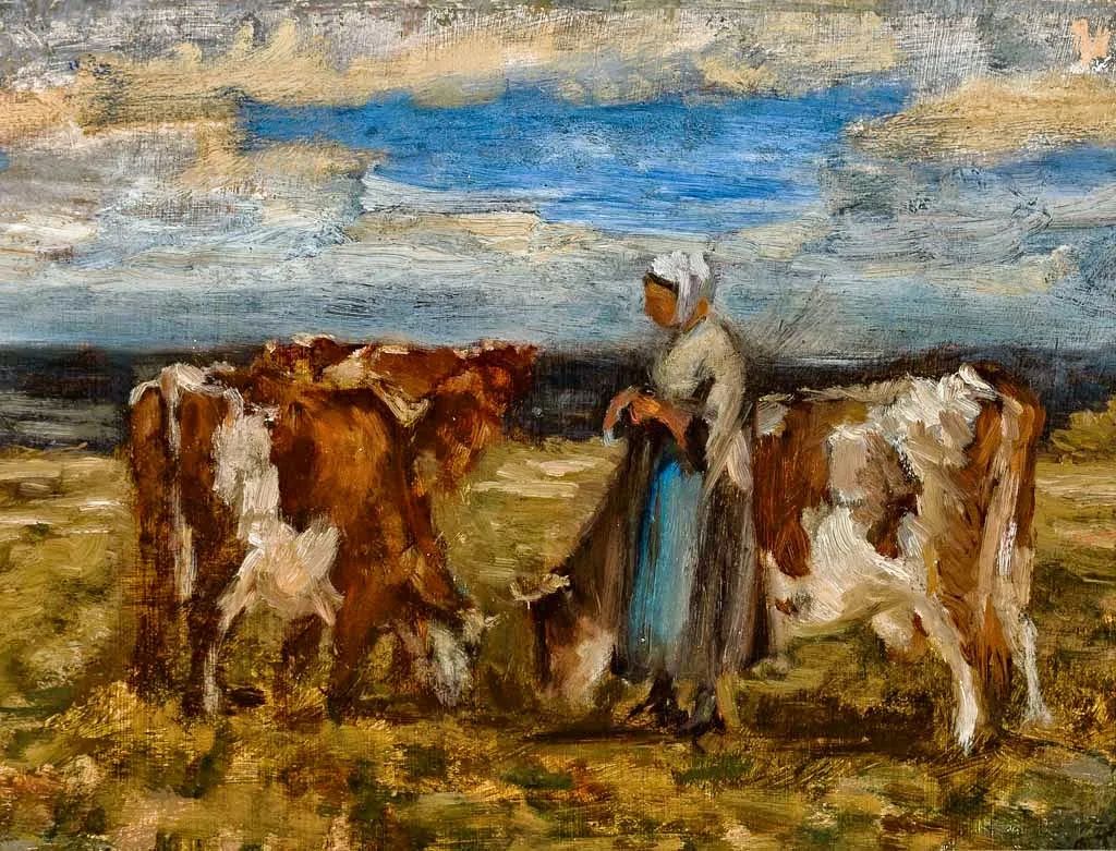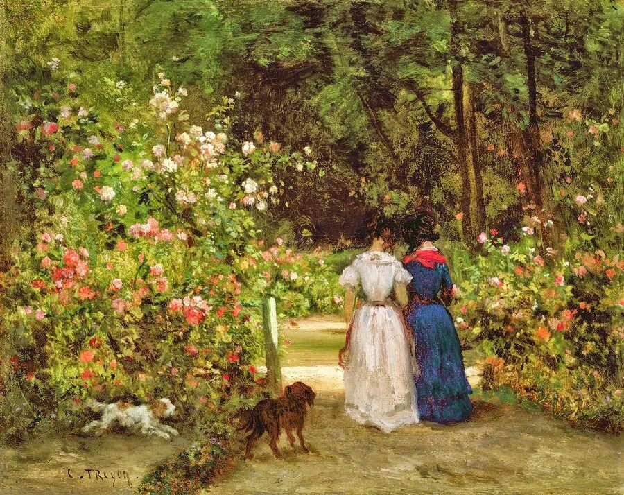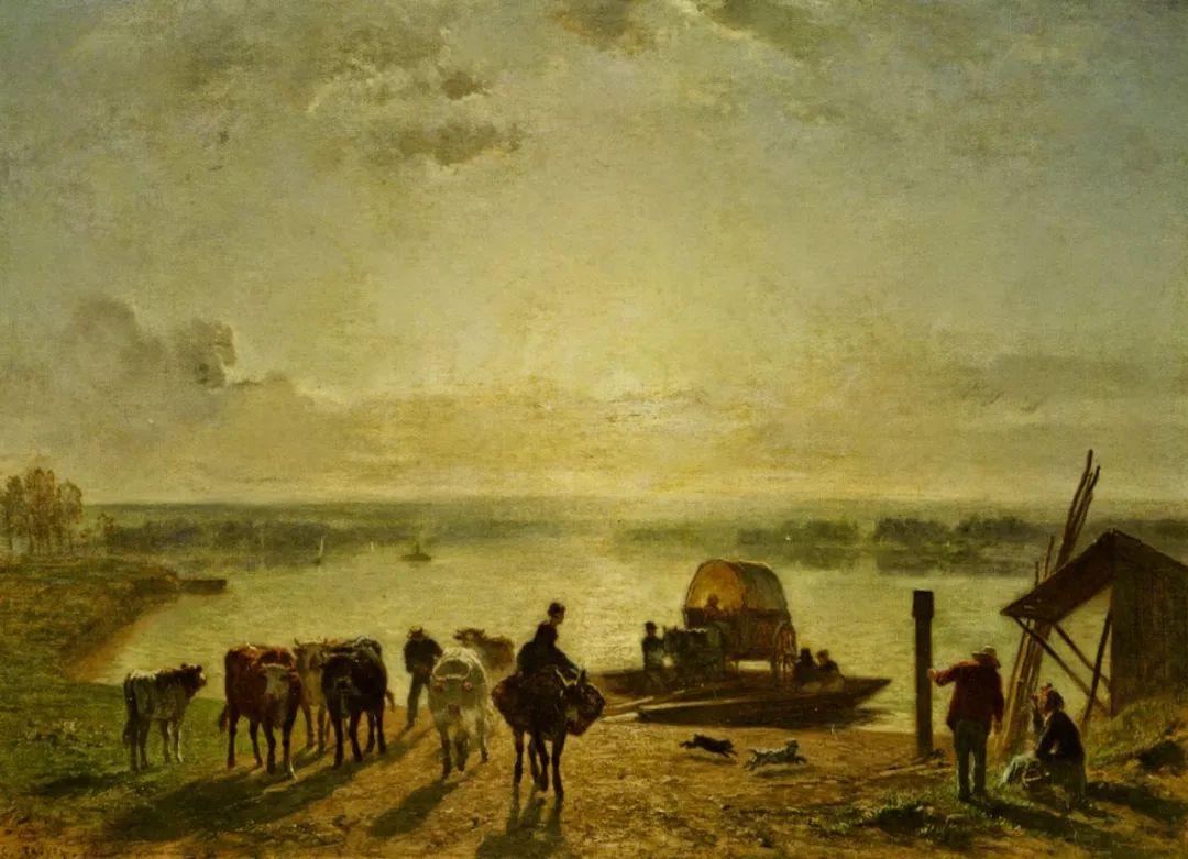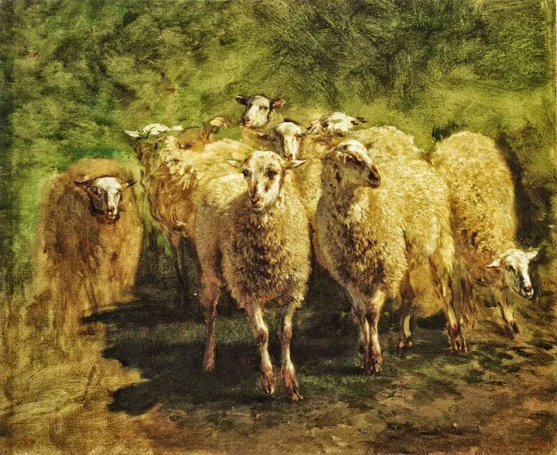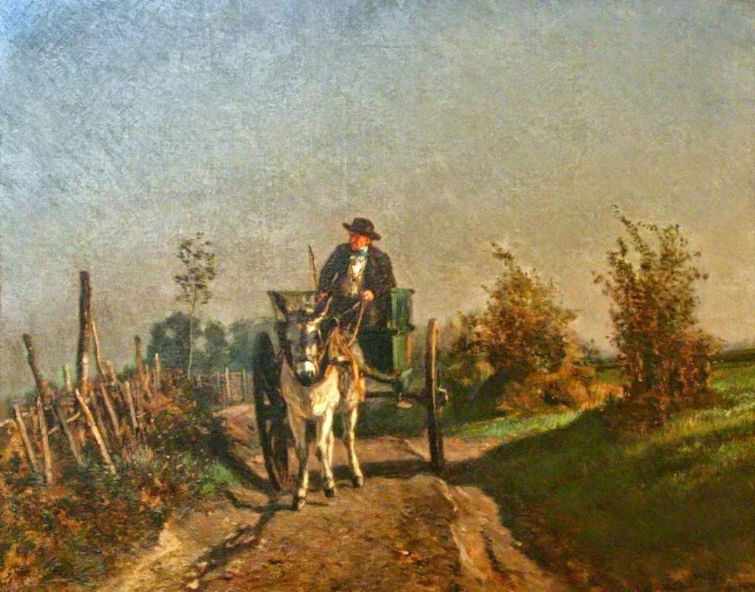 康斯坦·特罗雍(Constant Troyon,1810-1865年)是巴比松画派中擅长画有动物的风景画的法国画家,也喜欢描绘逆光中的景象。特罗雍的主要作品有《牛羊群》、《暴风雨将临》、《去耕作的牛群》、《晨光》等。