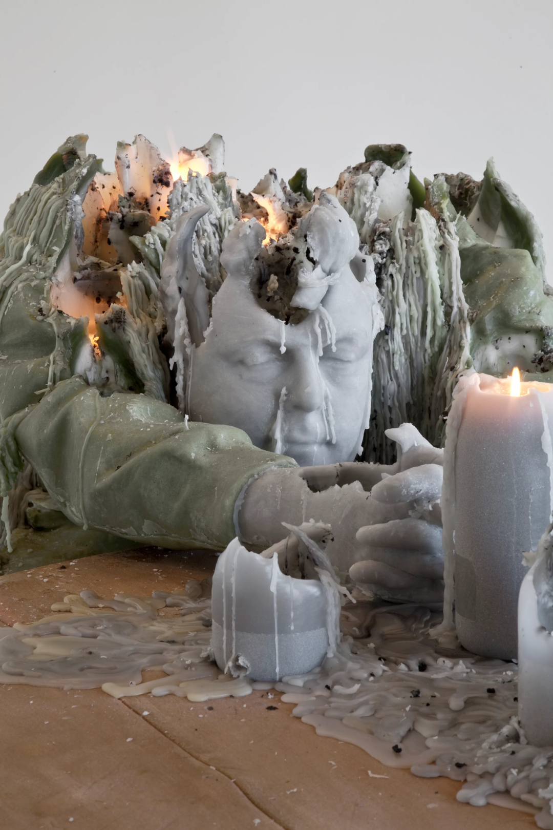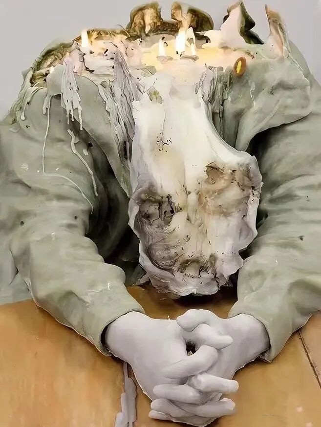 Urs Fischer装置雕塑是随着时间慢慢融化的蜡烛,雕塑里的每根蜡烛都会被点燃,只要灯芯还在,它们就会燃烧。这是对时间流逝的迷人沉思,因为每个雕塑都走向解体的命运。随着时间的推移,雕塑从现实主义演变为一种象征性的抽象作品。据悉,Fischer蜡制装置作品早在2012年纽约佳士得拍卖会上就以110万美元成交。