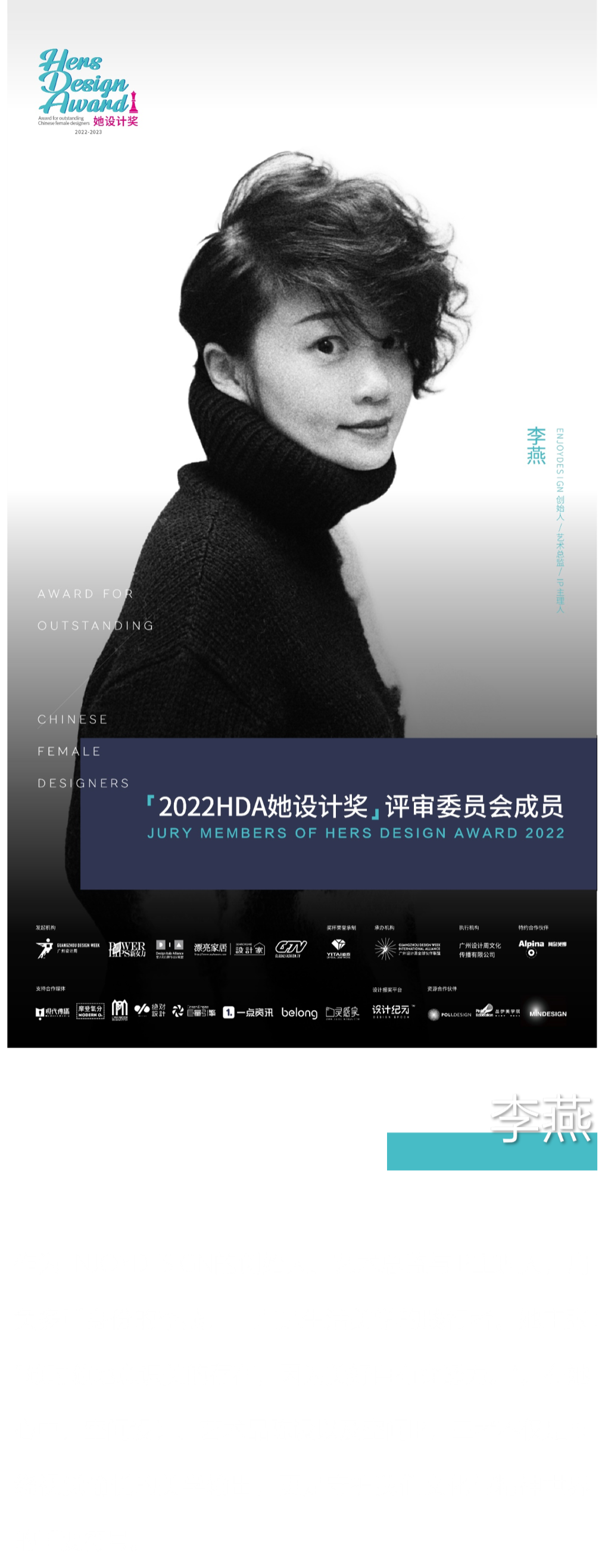 2022年,HDA她设计奖特邀请来自海内外知名媒体、室内建筑、时尚艺术等领域的杰出女性设计师、权威专家、生活美学家等组成评审委员会。