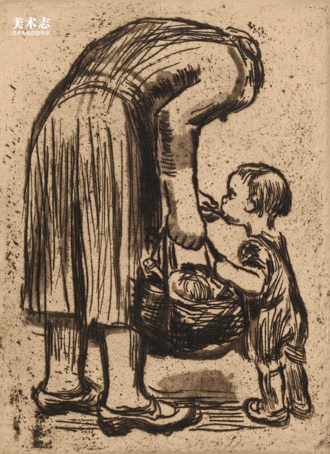 1929 年,当鲁迅第一次看到珂勒惠支的作品,即认定这就是他一直寻找最宜输入中国的版画、最为合适的艺术宣传工具。文直事核,峥嵘圭角,珂氏绘画,一如鲁迅文字。此后的十几年间,经由鲁迅的推介,无数的中国人从珂勒惠支那风格鲜明的黑白版画,表现细腻的铜版画和线条流畅的石版画上认识了她。