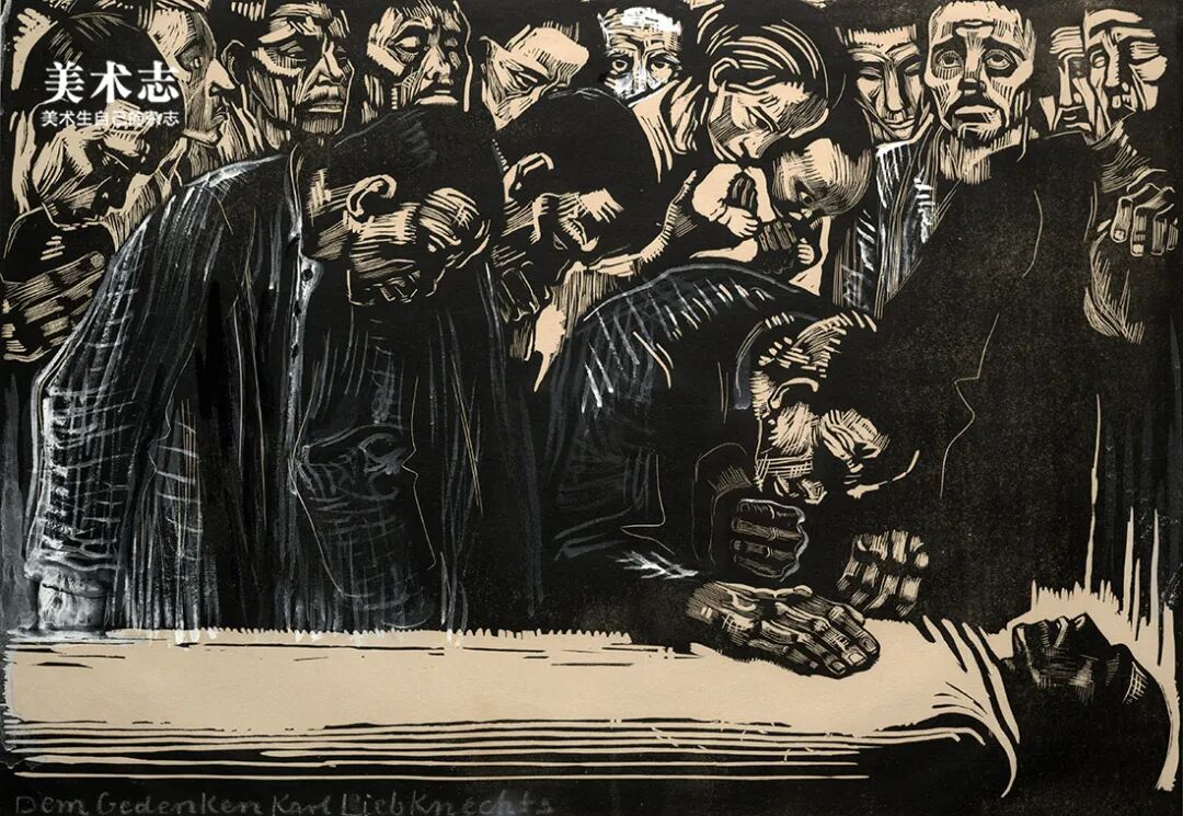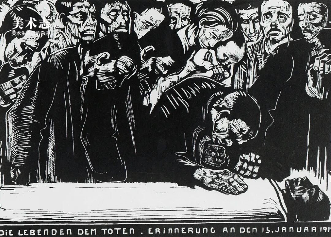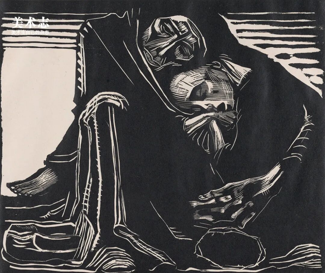 1931年9月20日出版的《北斗》创刊号上,木刻组画《战争》中的第一幅《牺牲》,就是珂勒惠支的作品。