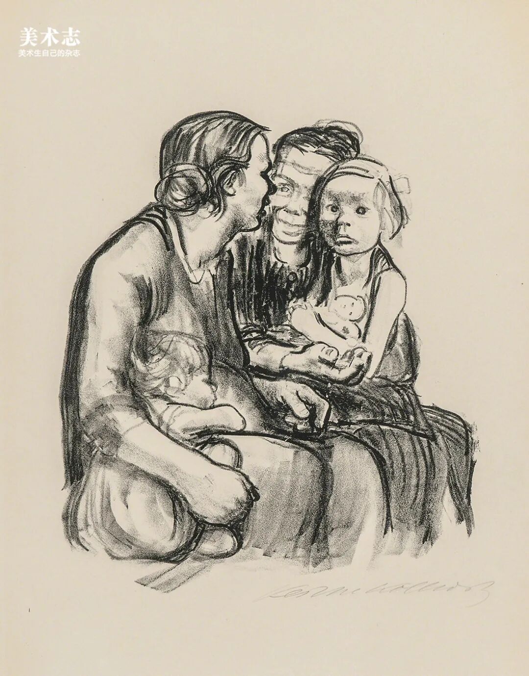 1927年应邀访问苏联,苏联的社会建设大大鼓舞了她 ,回国后创作的石版画《游行示威》、《团结就是力量》、《母与子》等,表明了她对无产阶级解放事业的新认识,艺术水平也达到一个新的境地。1933年希特勒上台,她虽然受到迫害,仍坚持作画。