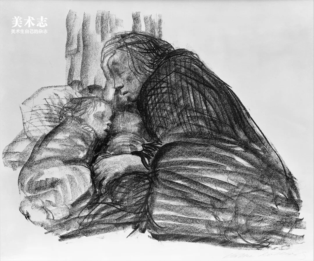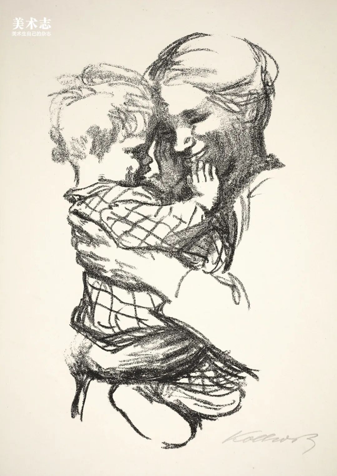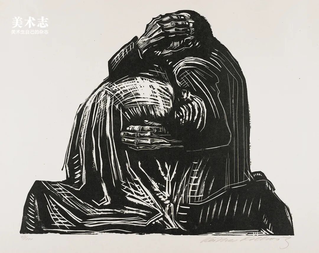 简单的线条,黑白的色彩,却让我们深深感受到失去亲生骨肉的切肤之痛,这就是珂勒惠支的力量。