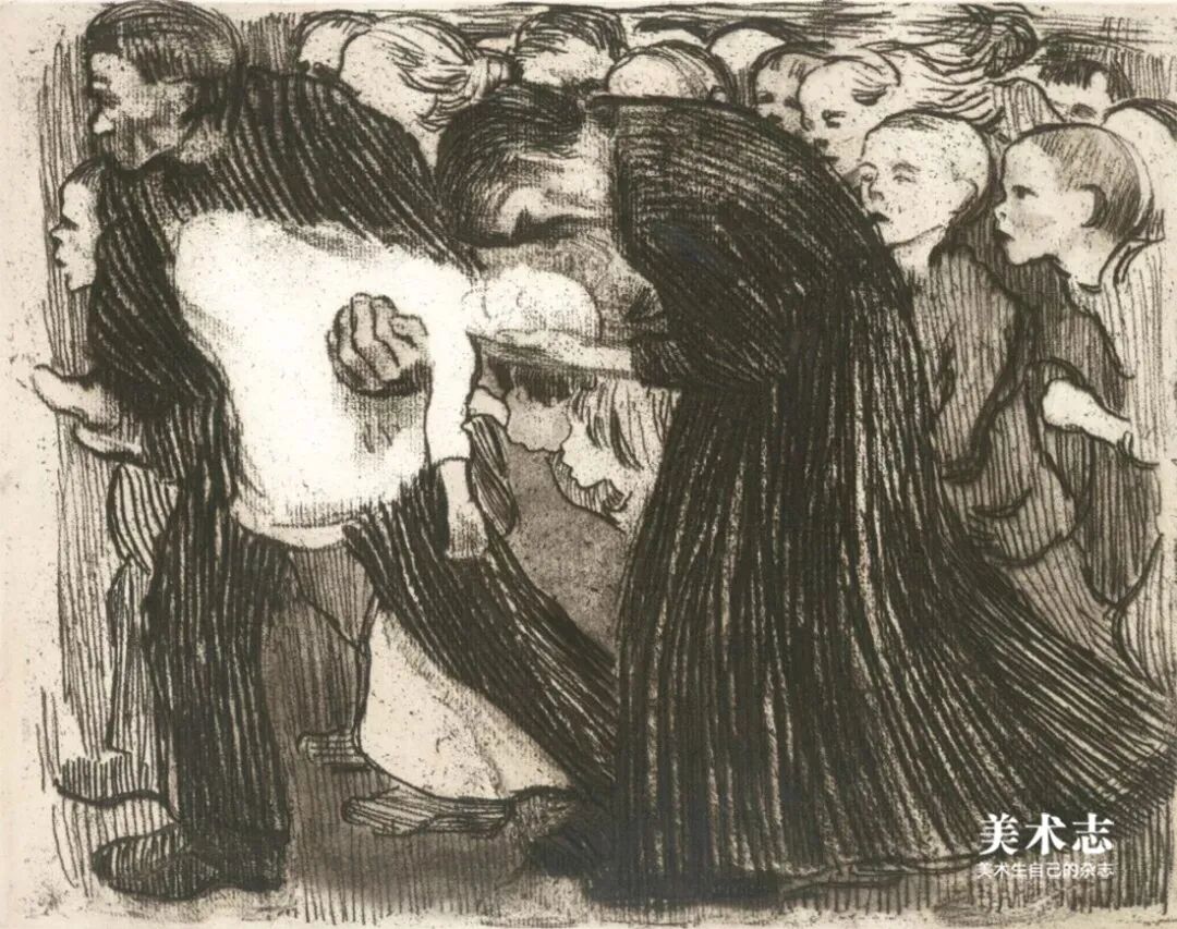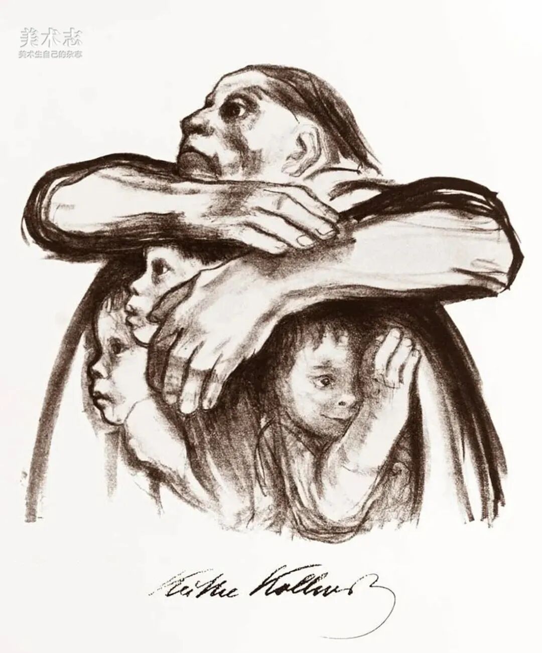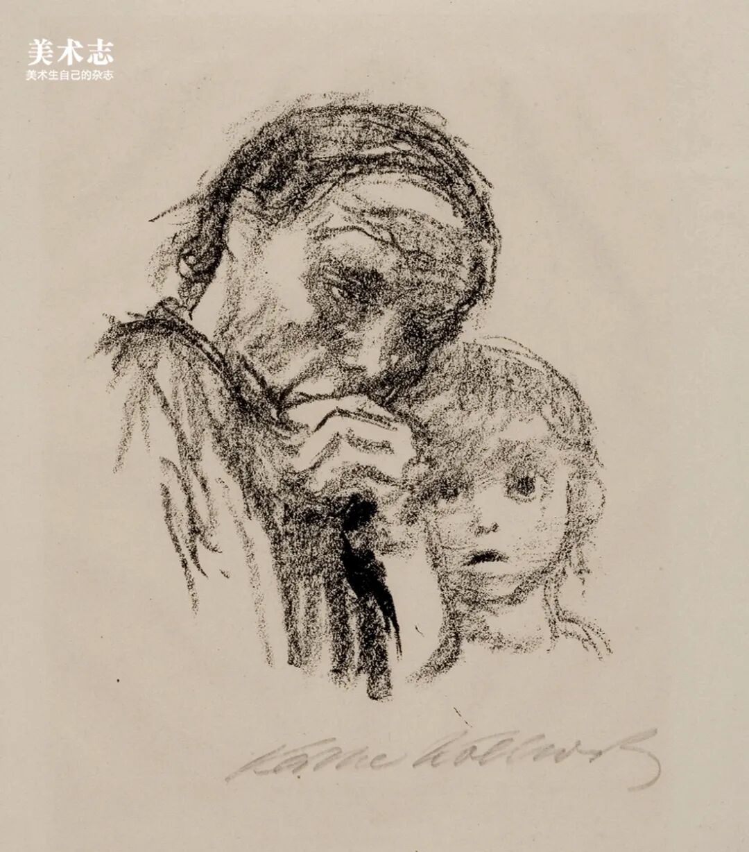 简单的线条,黑白的色彩,却让我们深深感受到失去亲生骨肉的切肤之痛,这就是珂勒惠支的力量。