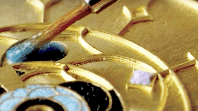 掐丝珐琅需用金属丝构造出一个个纹样,将不同颜色的珐琅色料填入后,再完成烧制,每一步都极为复杂。