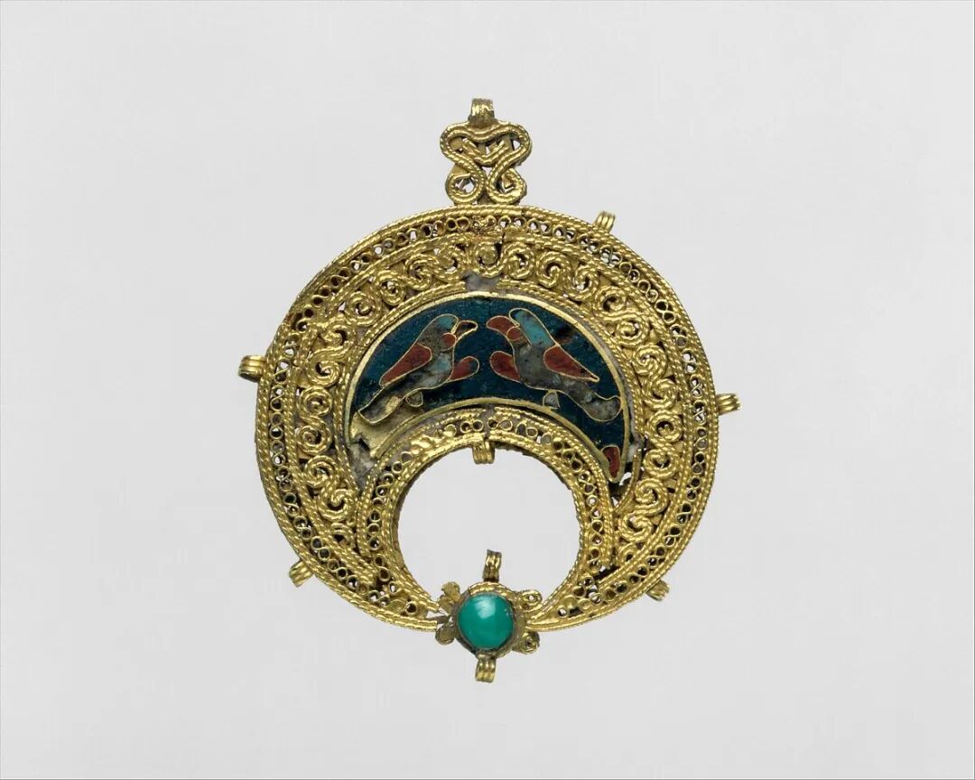 来自11世纪古埃及的一枚黄金嵌掐丝珐琅月牙形吊坠 / 大都会艺术博物馆藏
