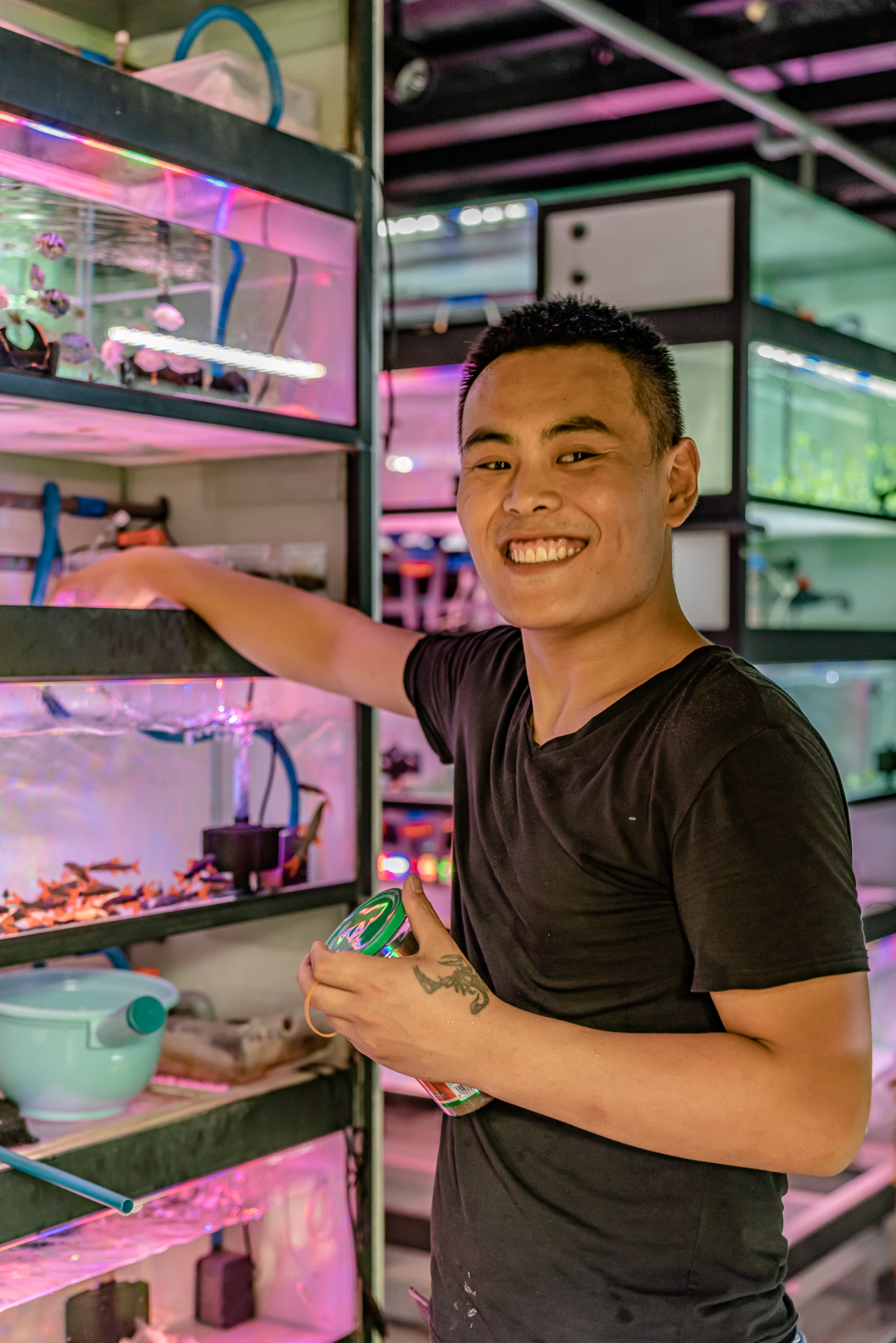 赵老板的叔伯家族,都从事鱼类养殖工作,我问他为什么会选择这份工作,和长辈做这行有关吗,他急急解释,也有一点关系吧,但还是自己从小喜欢鱼,一直喜欢。