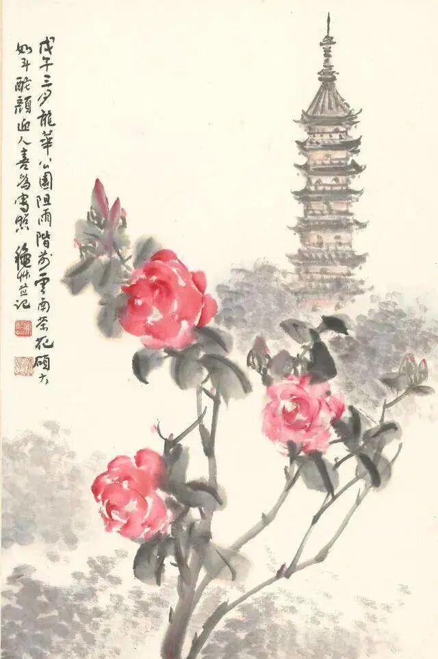 茶花、龙华塔 69x45.5cm 中国画 1978年 陈秋草 中华艺术宫藏