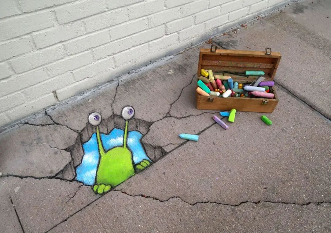 这些随机绘制的街头创意作品,保存时间极其短暂,一阵大风和一场细雨,就可以让它踪迹全无,所以这种用粉笔绘制的街头涂鸦作品,又被称为“短暂艺术”,不过,得益于照相机的存在,可以将这些作品拍成照片永久保存。