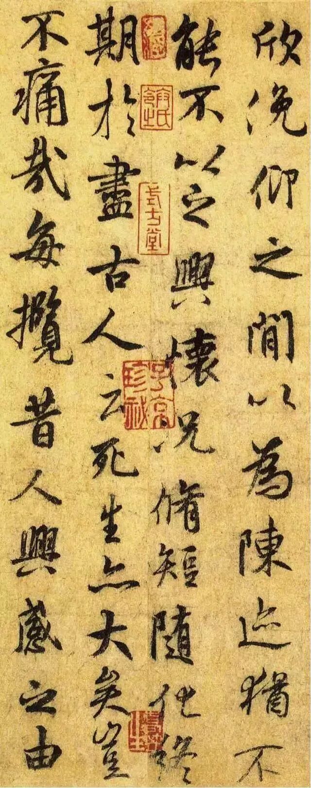 神龙本《兰亭序》赵氏子昂印直接大咧咧地盖到了字上