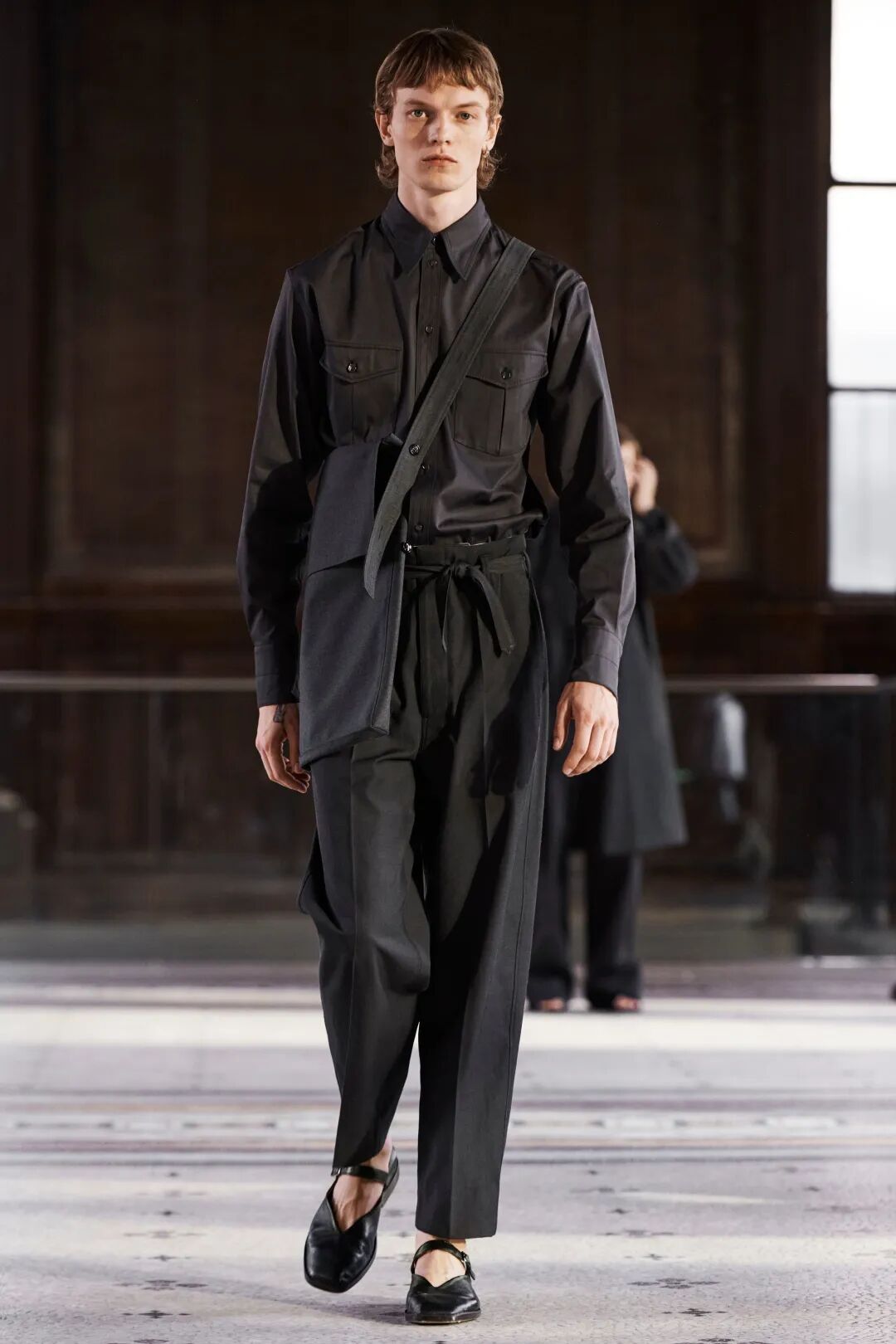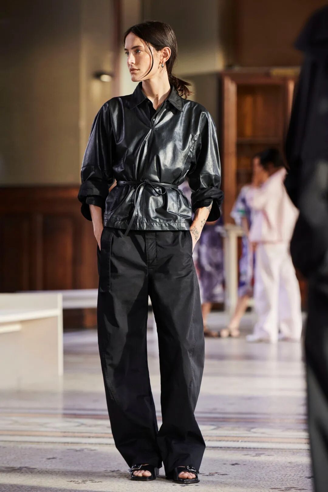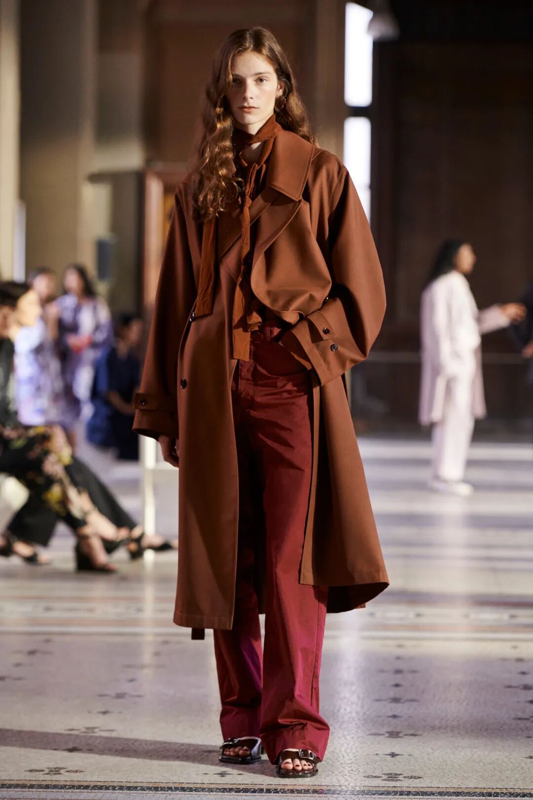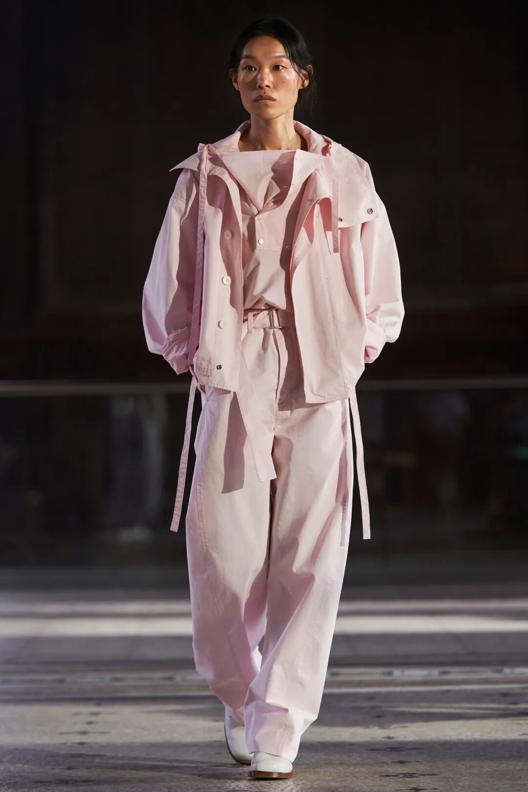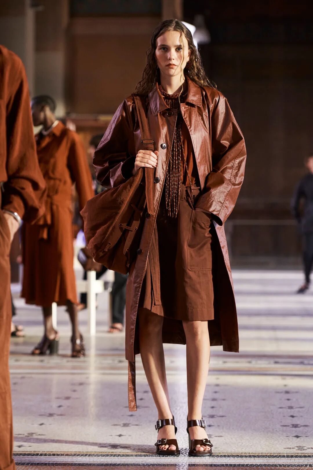 2023春夏系列,Lemaire以They’re waiting(等待的人)为主题,让模特们在场地中自由穿行,正如巴黎人的日常生活场景般。观者变身旅客,进入一个好似火车站的大厅之中。