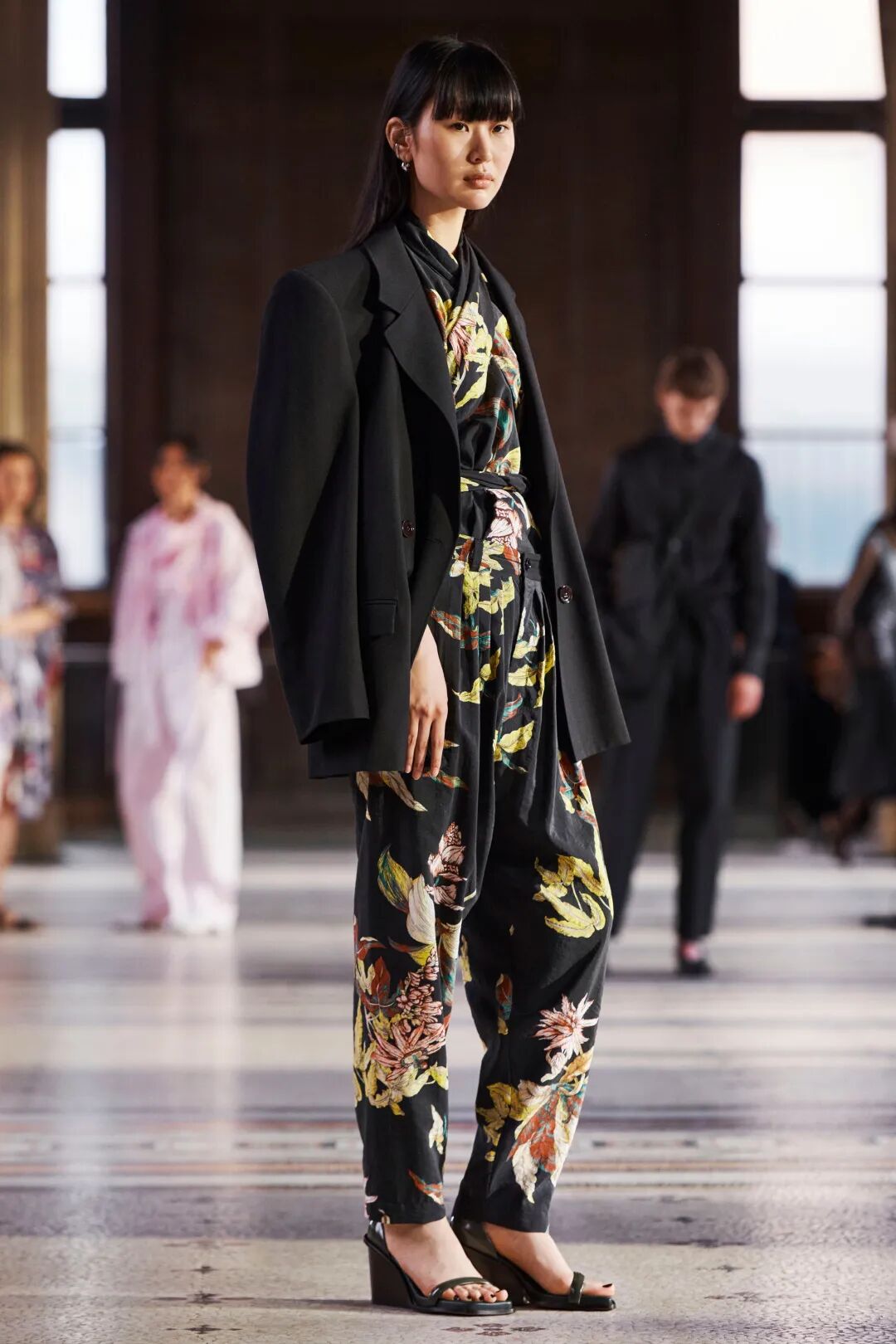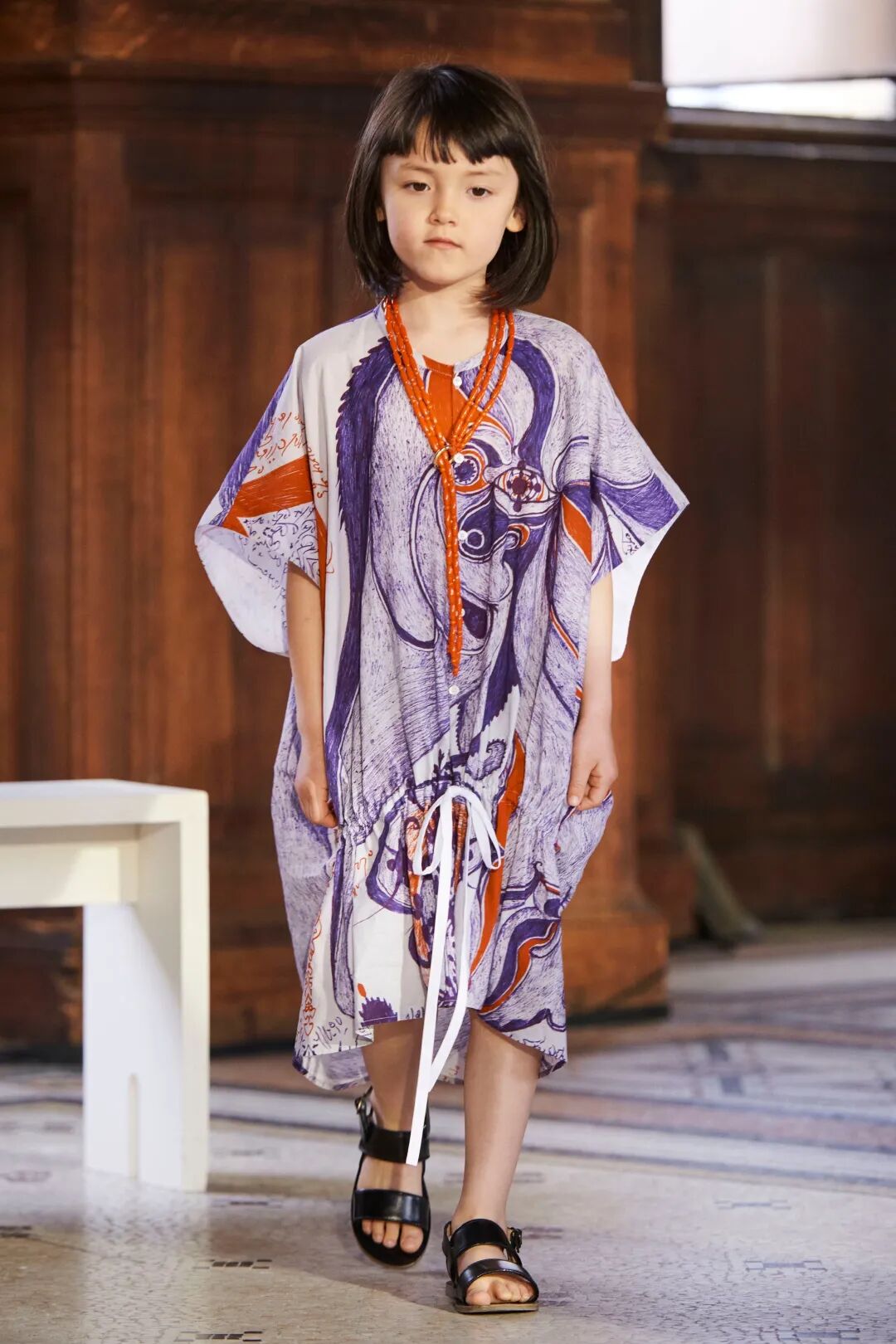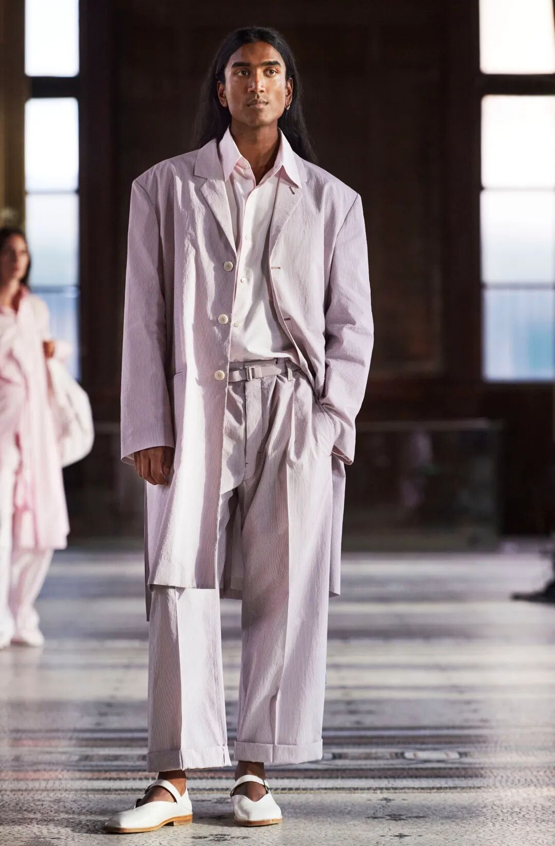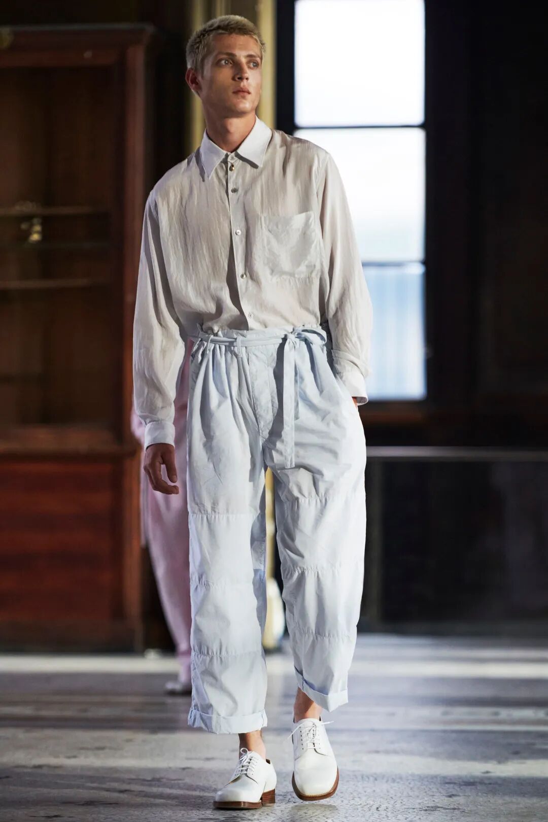 柔软而充满空气感的衬衫、连衣裙和长袍。宽松的廓型便于律动,在着衣者与衣服之间留有空间,同时在腰部、脚踝处略作调整,以塑造廓型,勾勒出一份几不可察的精致感。