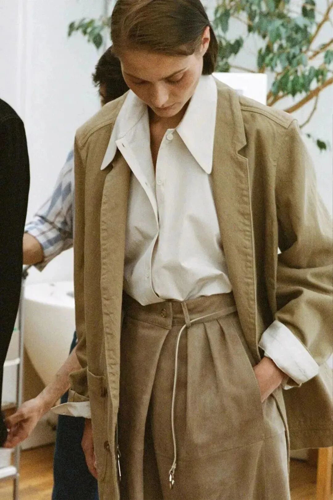 一切安静且富有生机,那随性的、慵懒的、不失优雅的浪漫在空气中展开,并感染着每一个人。这种不费力的时髦,少了造作和张扬,多了份随性与自然,正是Lemaire一以贯之的设计风格。