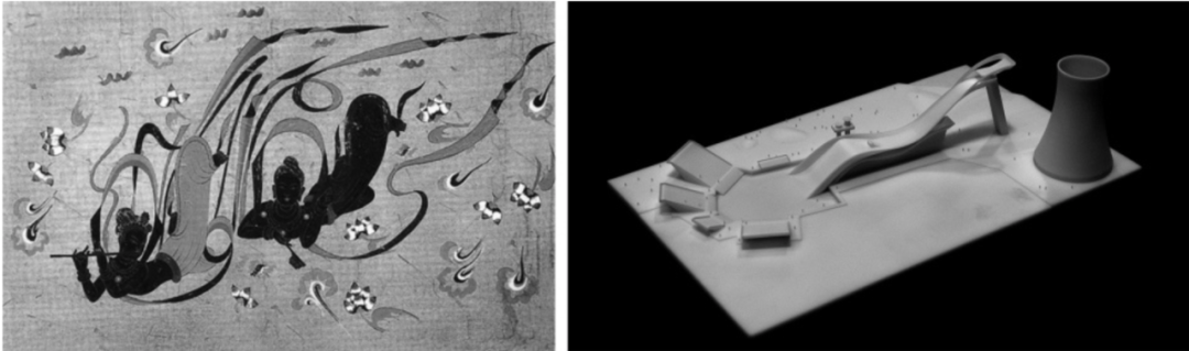 首钢滑雪大跳台的造型设计灵感,源自敦煌“飞天”飘带的形象。跳台的钢结构设计还预留了未来竞赛剖面变化的可能性。而轻透的体量在化解巨型跳台给人带来的压迫感的同时,也满足了竞赛对于防风的要求。
