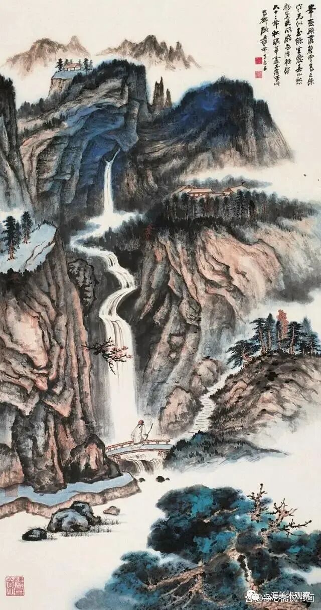 而石涛的山水,他通过布局画面山川河流的走向,达到整幅画面的平衡,而这个后来在张大千画中是经常可以看到这样的构图。