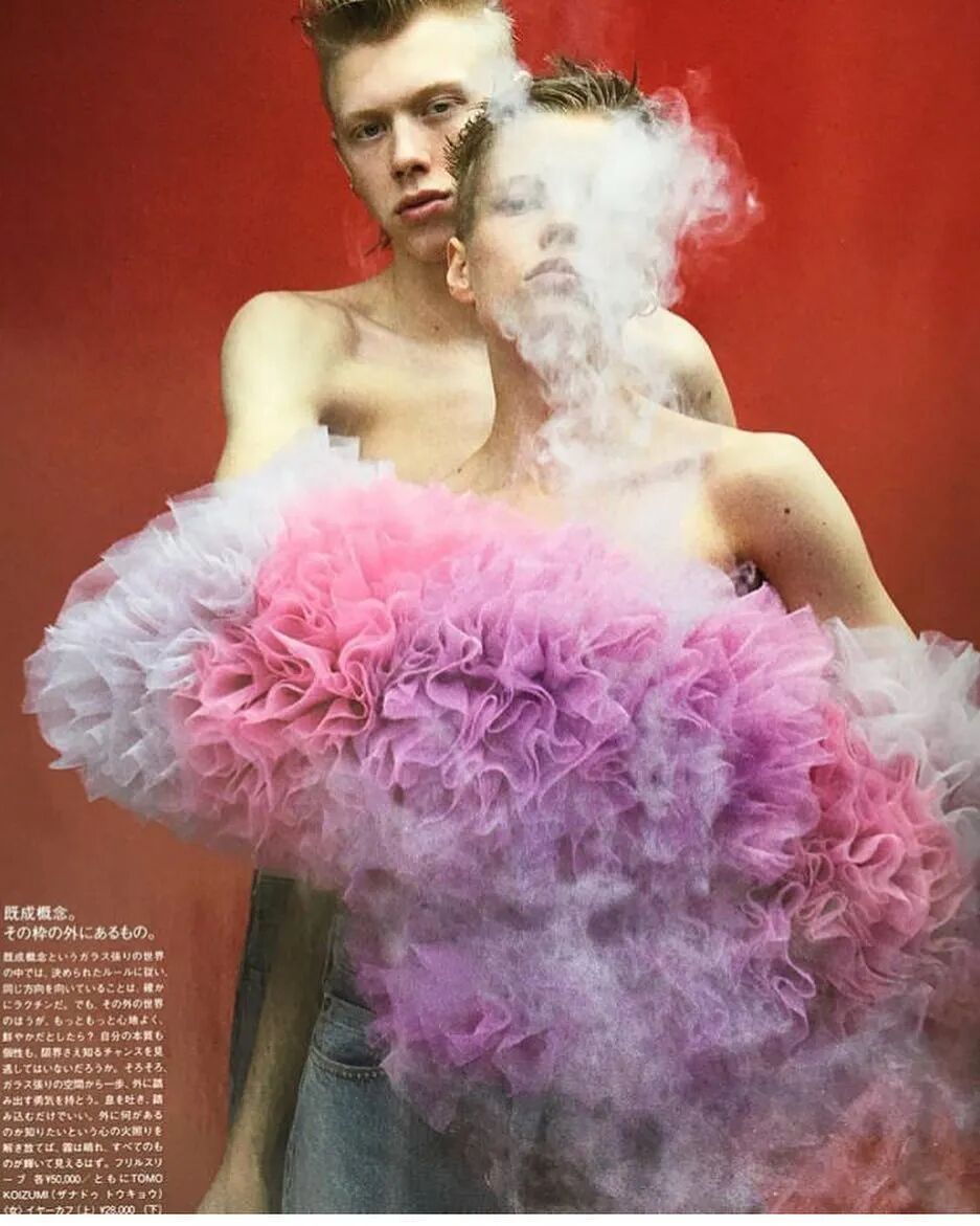 带有浓烈的色彩和浮华戏剧张力的透明欧根纱时装创作,作为Tomo Koizumi 最具讨论度的标签式设计而被大众熟知,他的浮夸梦幻蓬蓬裙设计作品受到Marc Jacobs、Miuccia Prada 等前辈的大力支持,纽约大都会博物馆甚至还买了他的一件作品作为永久收藏