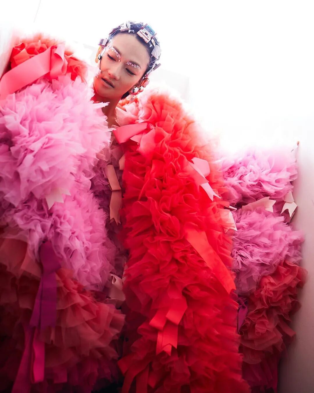 他以日本丧葬文化、塑料花圈为灵感,制作充斥浪漫死亡色彩的千层蓬蓬裙而一夜爆红!