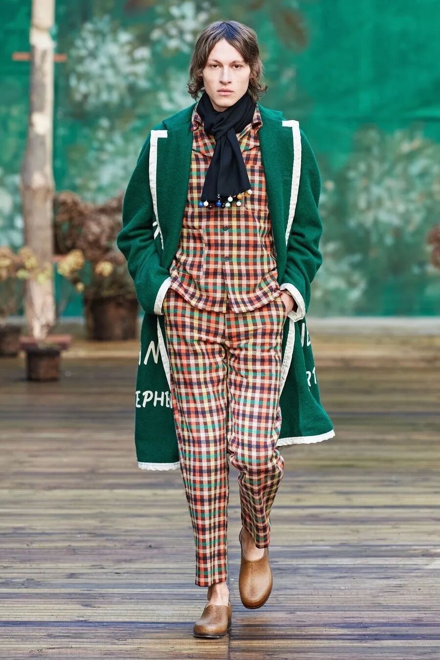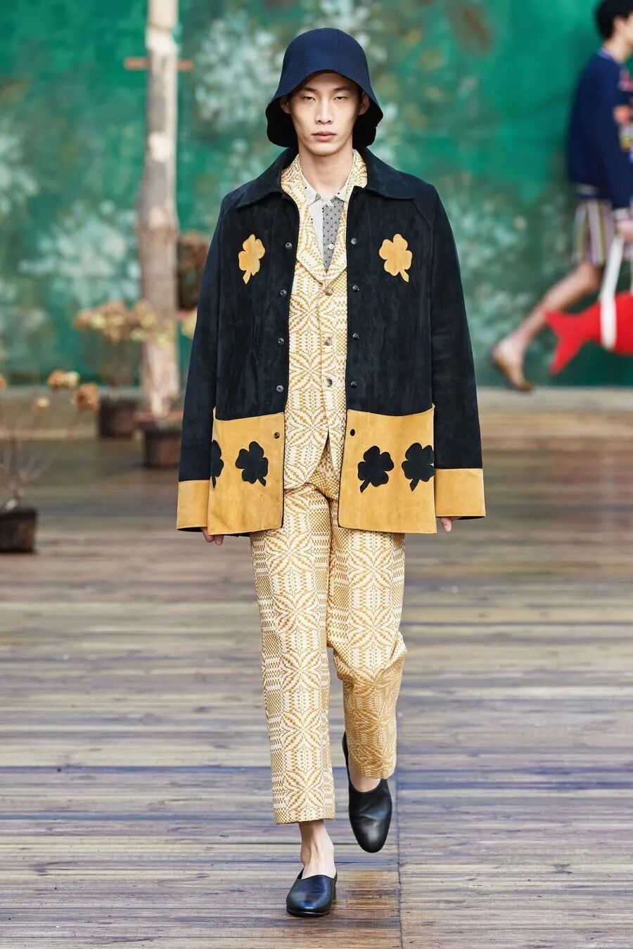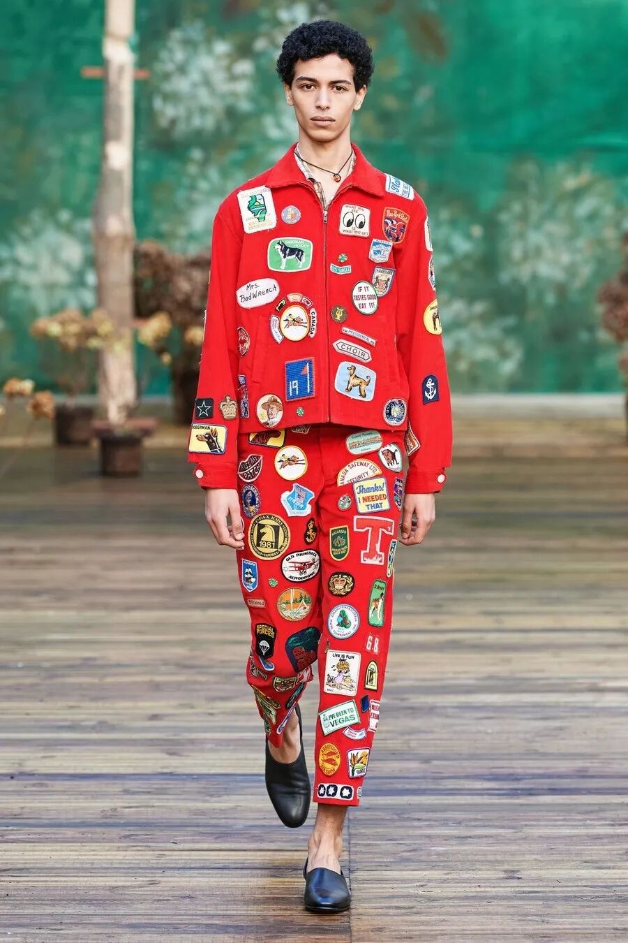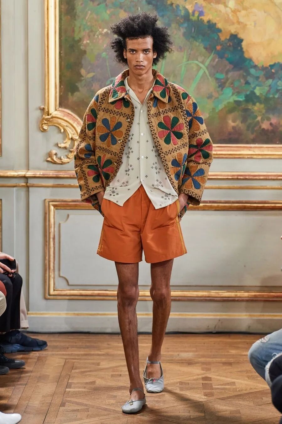 我们能看到Bode那些常用的设计,男装夹克上贴着的徽章似的标志、手绘涂鸦色彩的字母与图案、格纹与条纹纵横交错的流线感、不同撞色的拼接设计、以及各种动物图案…