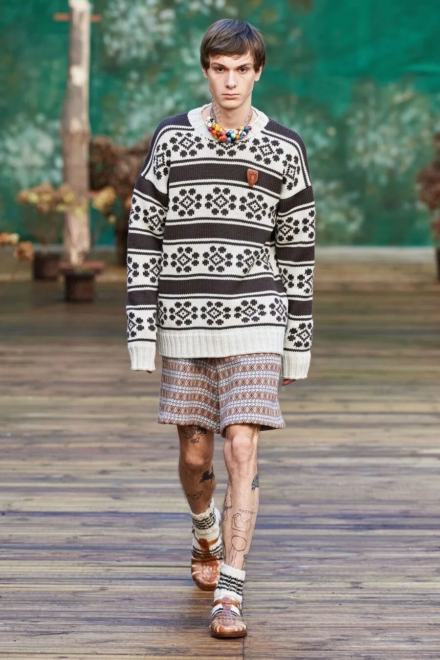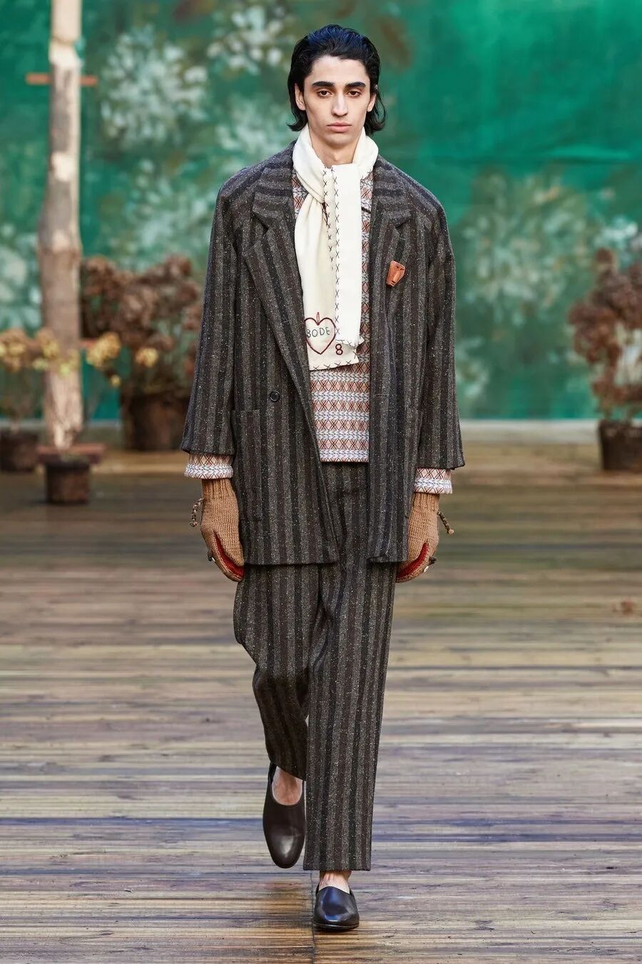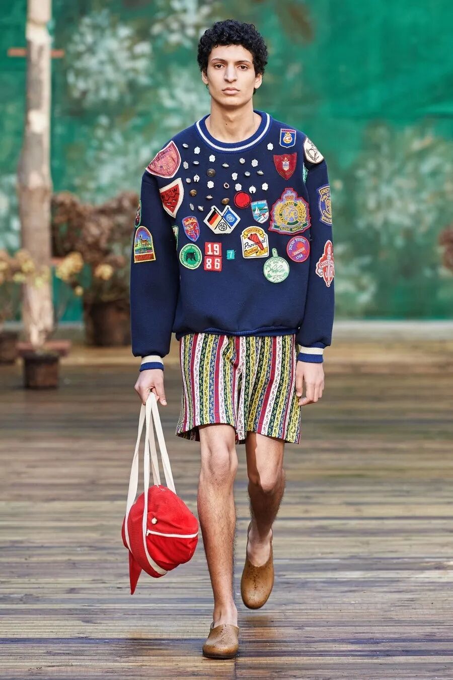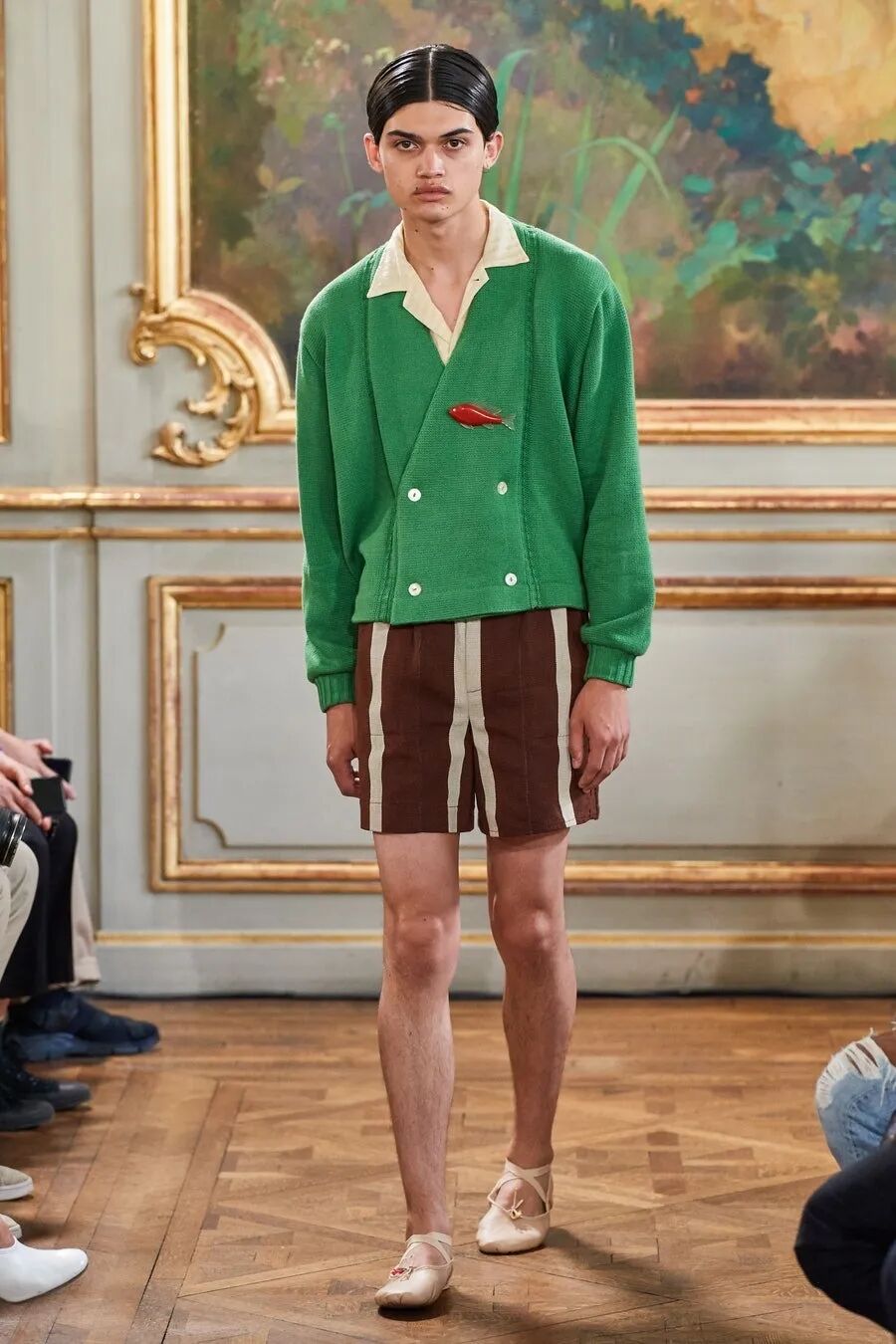 我们能看到Bode那些常用的设计,男装夹克上贴着的徽章似的标志、手绘涂鸦色彩的字母与图案、格纹与条纹纵横交错的流线感、不同撞色的拼接设计、以及各种动物图案…
