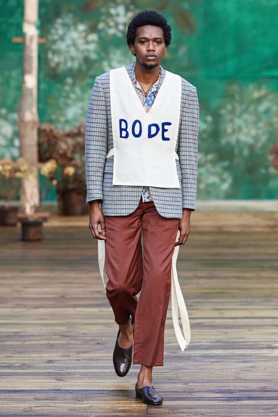 2016年,Emily Adams Bode创立了自己的同名设计品牌Bode,其以设计古董仿制品为品牌理念,从 20 世纪 20 年代的法国床单到新英格兰的维多利亚棉被。她的时尚单品许多都是独一无二的,不可复制的美大概就是Bode辛苦追求着的!