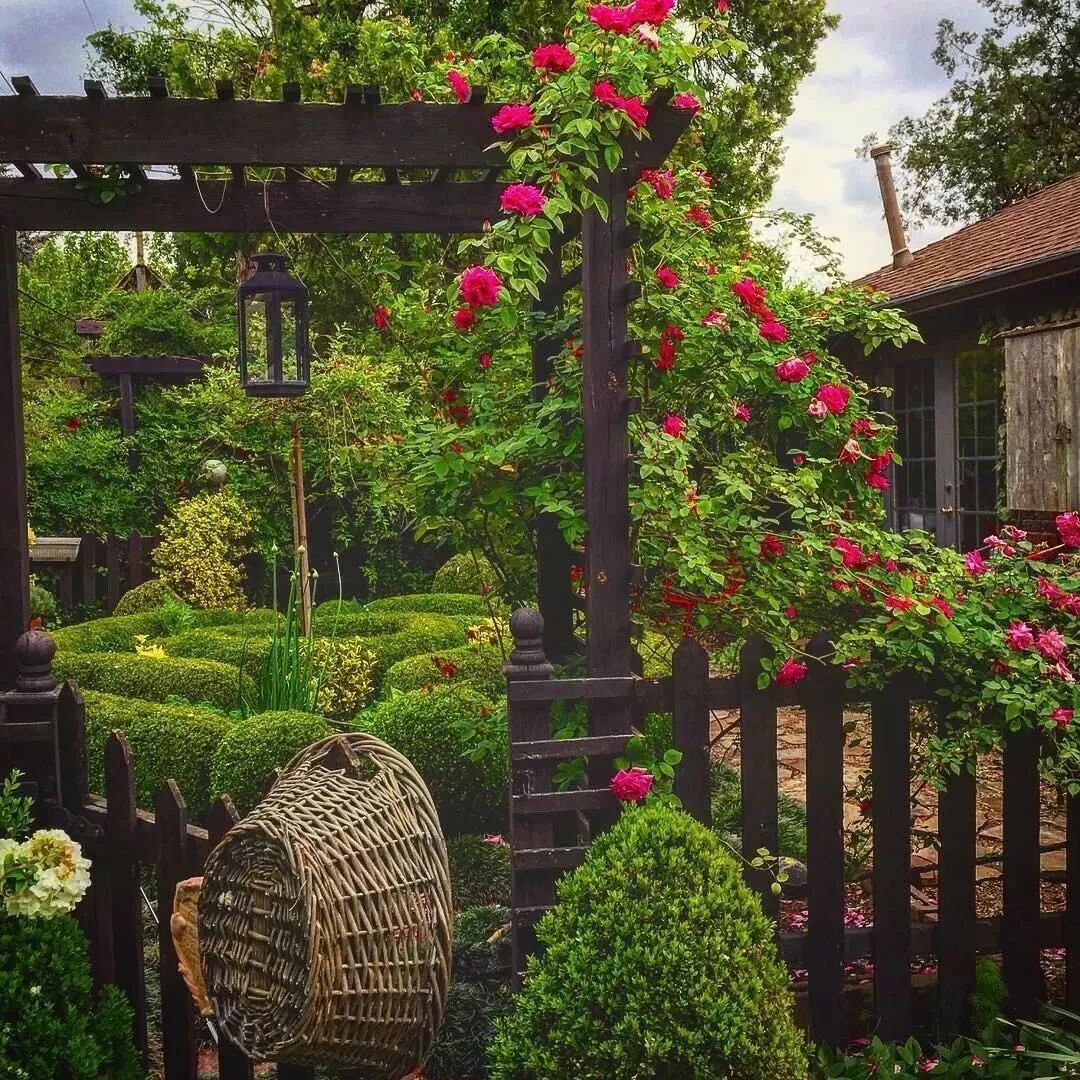 屋后才是整个花园最核心、也是她花费最多心思的地方,在花园的设计搭配上,她讲究错落有致,注重植物营造出来的而不同层次感。爬墙的藤本月季当然是花园里少不了的品种,种上几株,搭好篱笆让它们自由攀爬,不用特别照料,也能带来满满的惊喜。