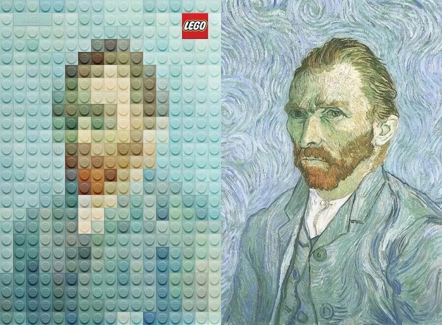 好了,科普结束。其实,乐高的精妙之处并不是搭得越大越好,而是激发人们的想象潜力,这才是乐高的初心。来自意大利的艺术家马尔科·苏达诺,就用彩色的乐高积木,精心再现了艺术史上的一些伟大绘画杰作,其中包括达芬奇的《蒙娜丽莎》,梵高的《自画像》,还有我们熟悉的《戴珍珠耳环的少女》等等。