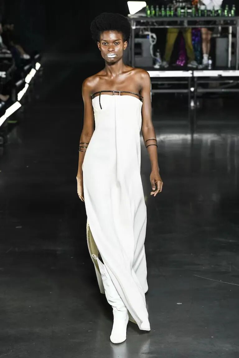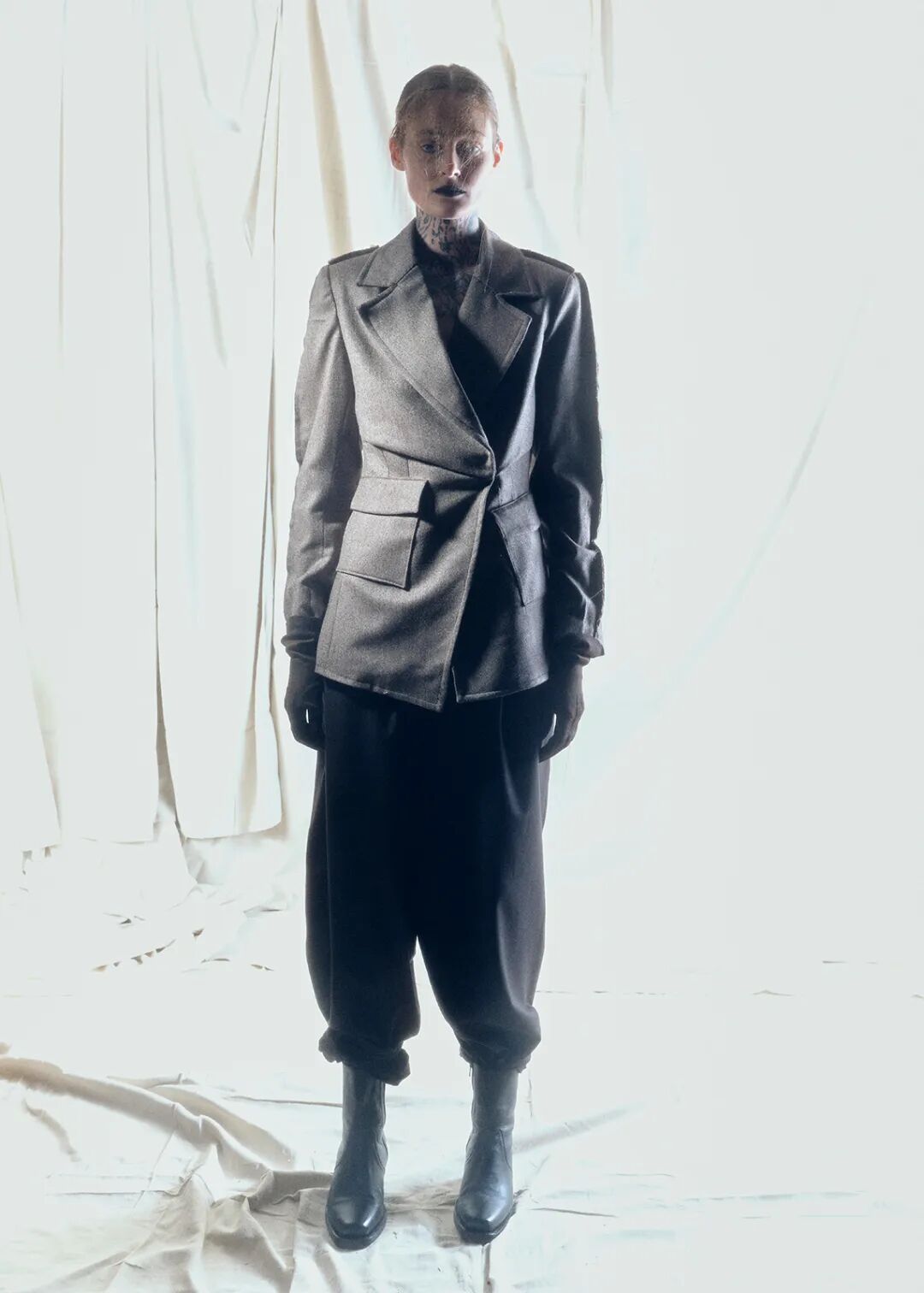 她将这种坚韧、勤奋和颓废美学投射到巧妙的剪裁、精美的垂褶连衣裙和雕塑般的紧身造型上,在轻盈活力的女性气质与坚韧充满力量的女性形象之间取得了完美平衡。