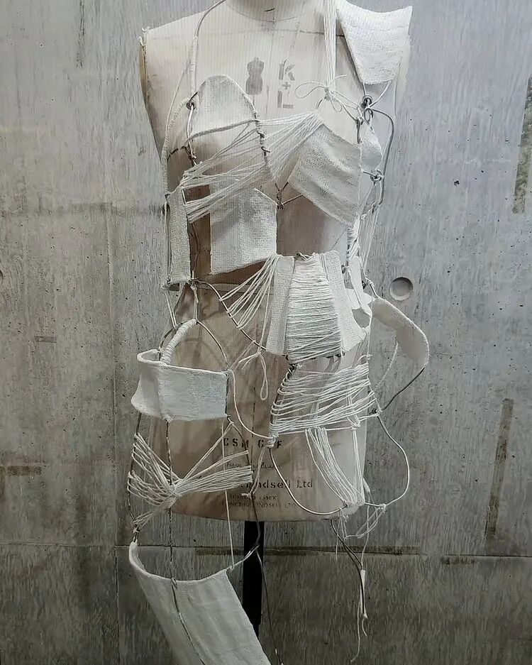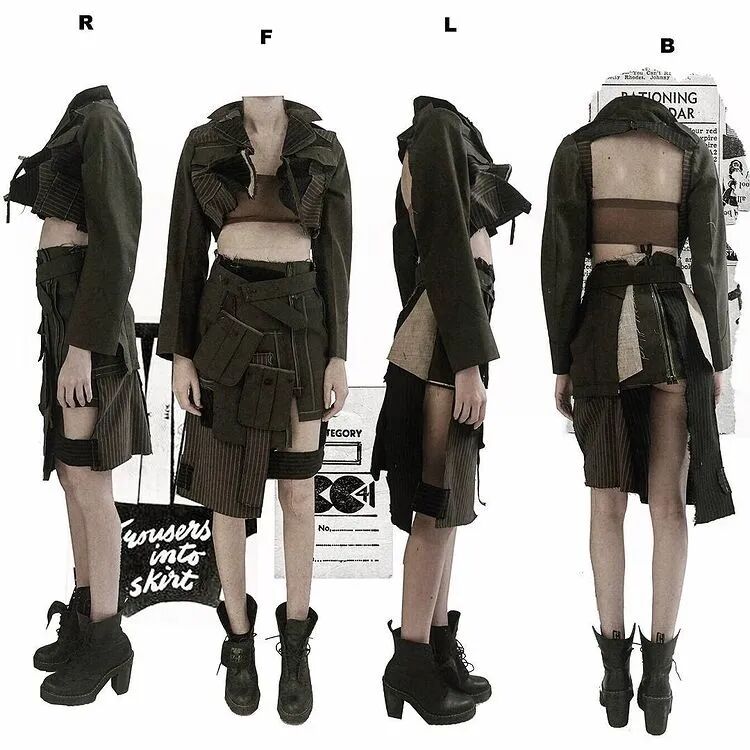 受到人类破坏和修复能力的双重性的启发,Elena在毕业作品中重新审视了1941年的战时实用服装产业,研究了可持续的生产技术,赞美了限制条件下的创造力。