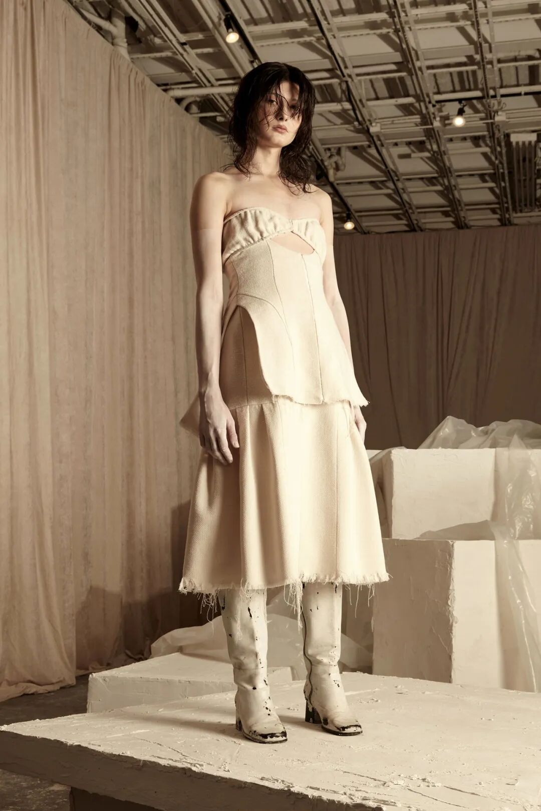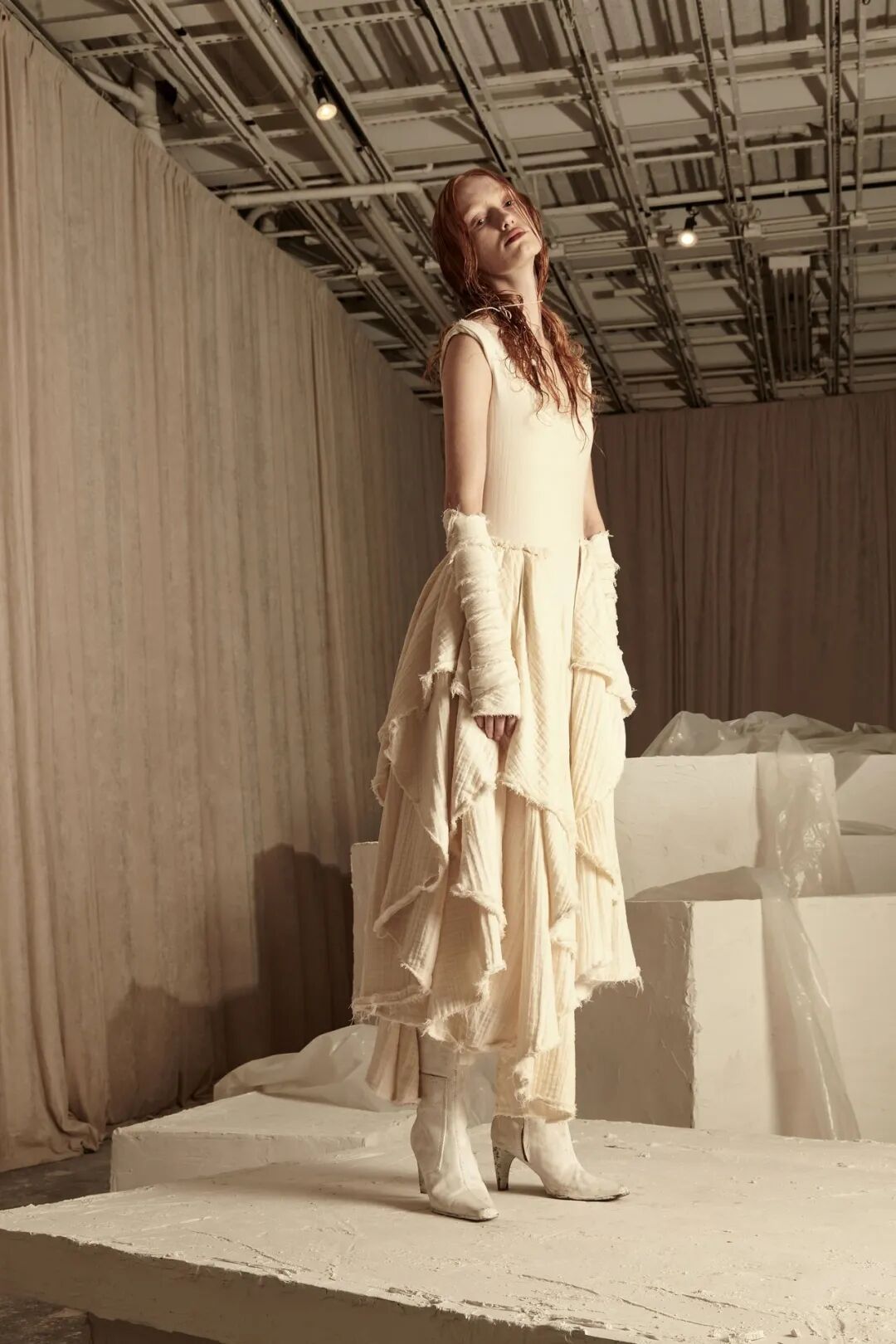 品牌以可持续性为支柱,其美学探讨了解构主义、激进细腻的女性气质和多样的建造方式。