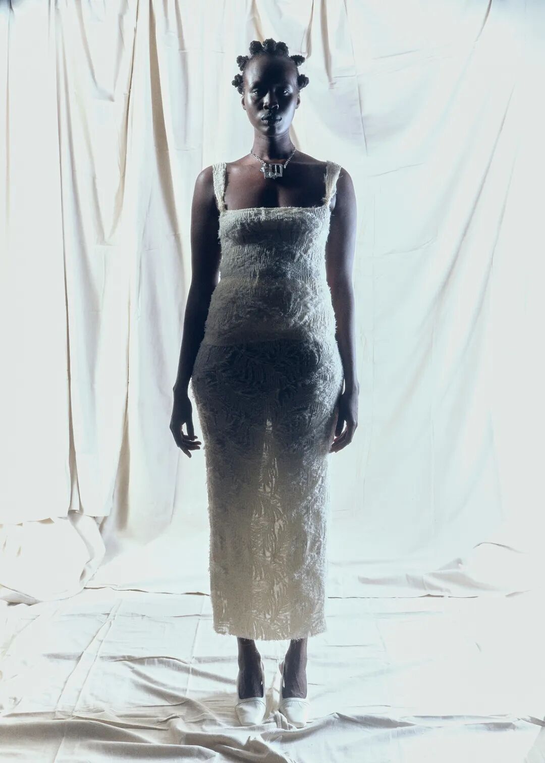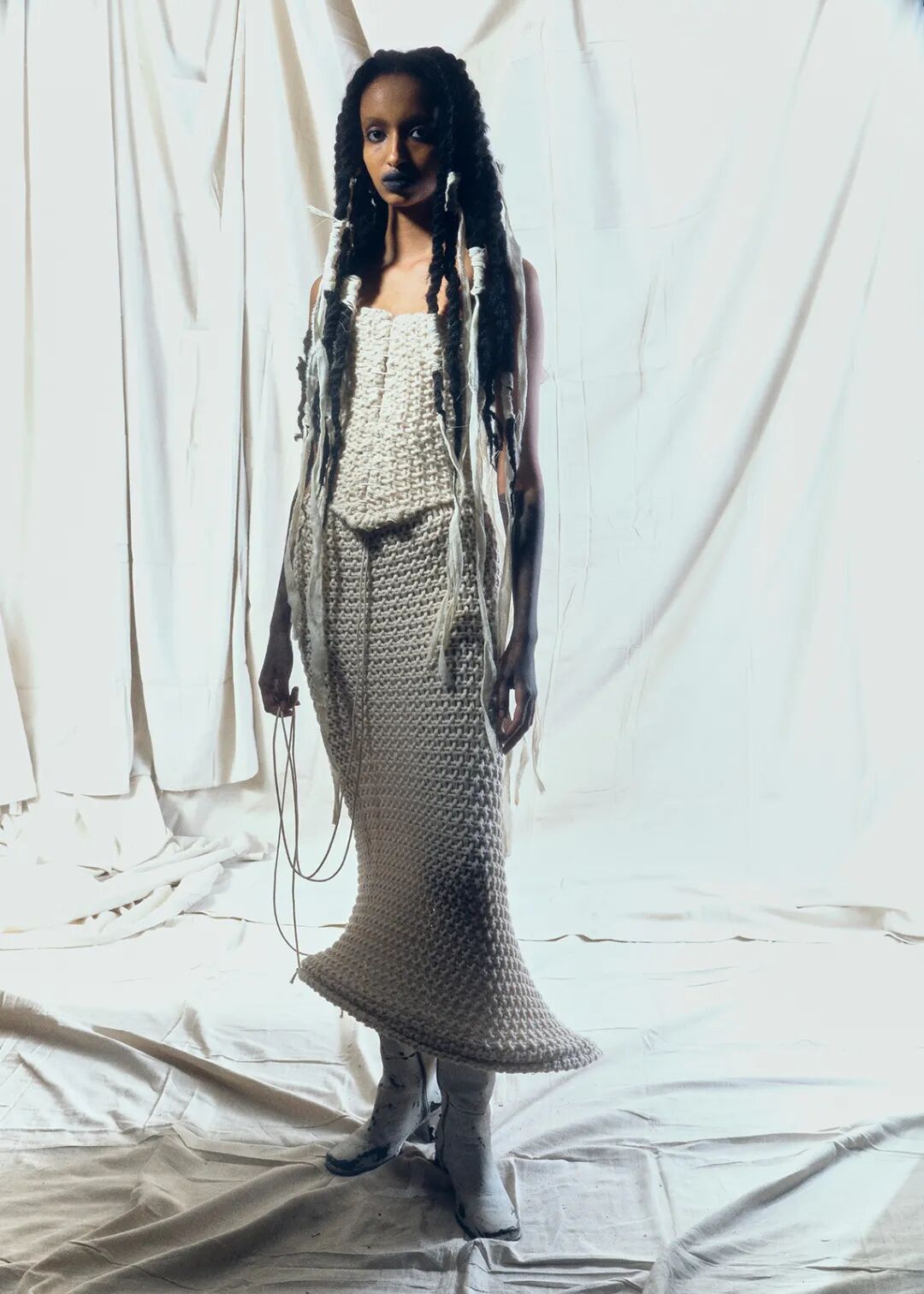 因此,你能在Elena的设计中看到极具侵略性的精致美学特征。她将美国中西部手工传统融合在高级时装中,凭借功能性凌驾于视觉美感之上的可触知性进行设计,以一种超越当代研究的方式,探讨着女性气质与力量之间的关系。