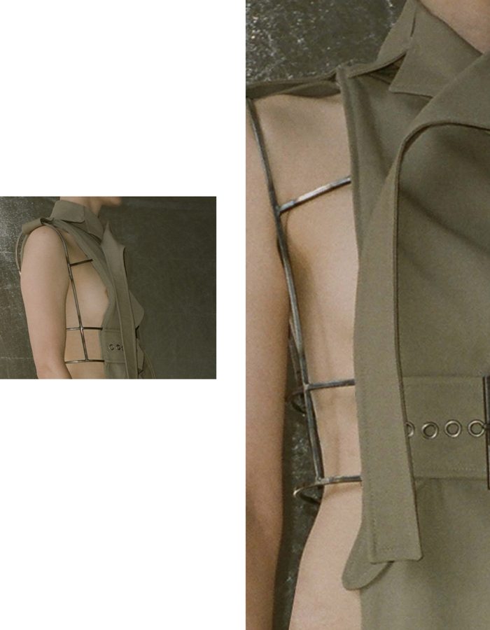 出于对家乡作为战时作出最重要贡献的钢铁城市这一历史意义的敬佩,Elena在设计中与当地工匠合作制作了金属制品,通过加热锤炼使金属条弯曲,与柔软的布料融合而成时装,并以战时所体现的坚韧的康复信念命名。