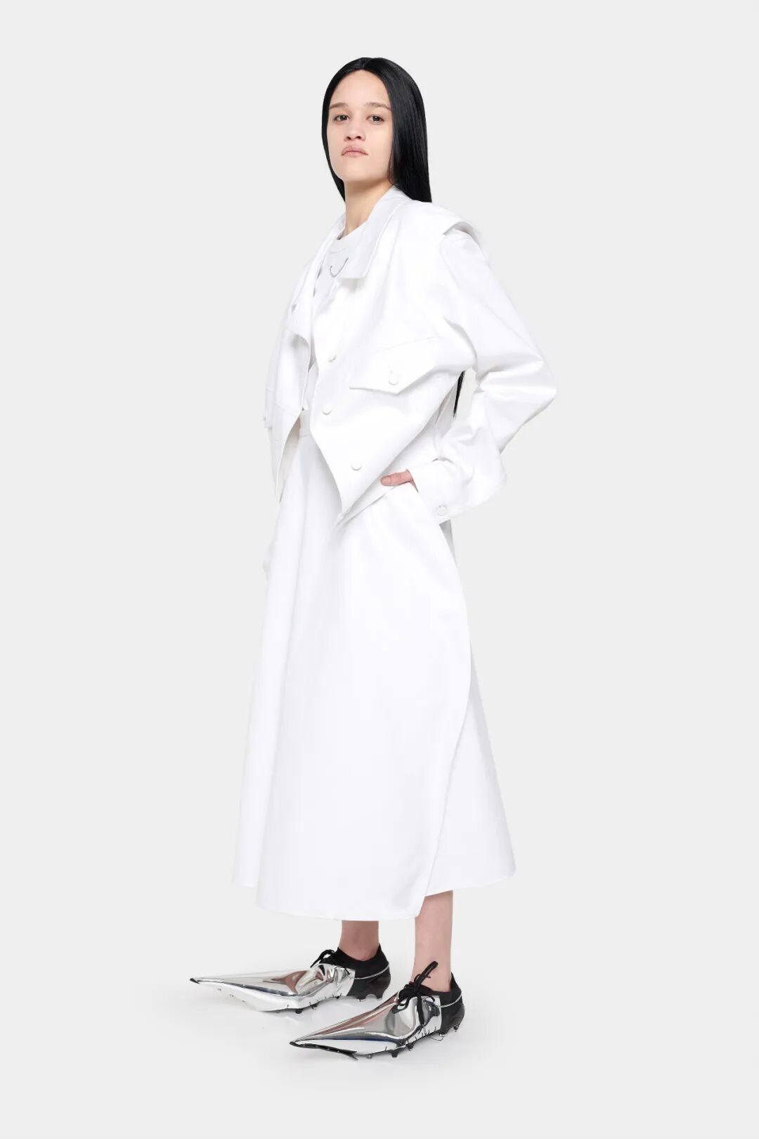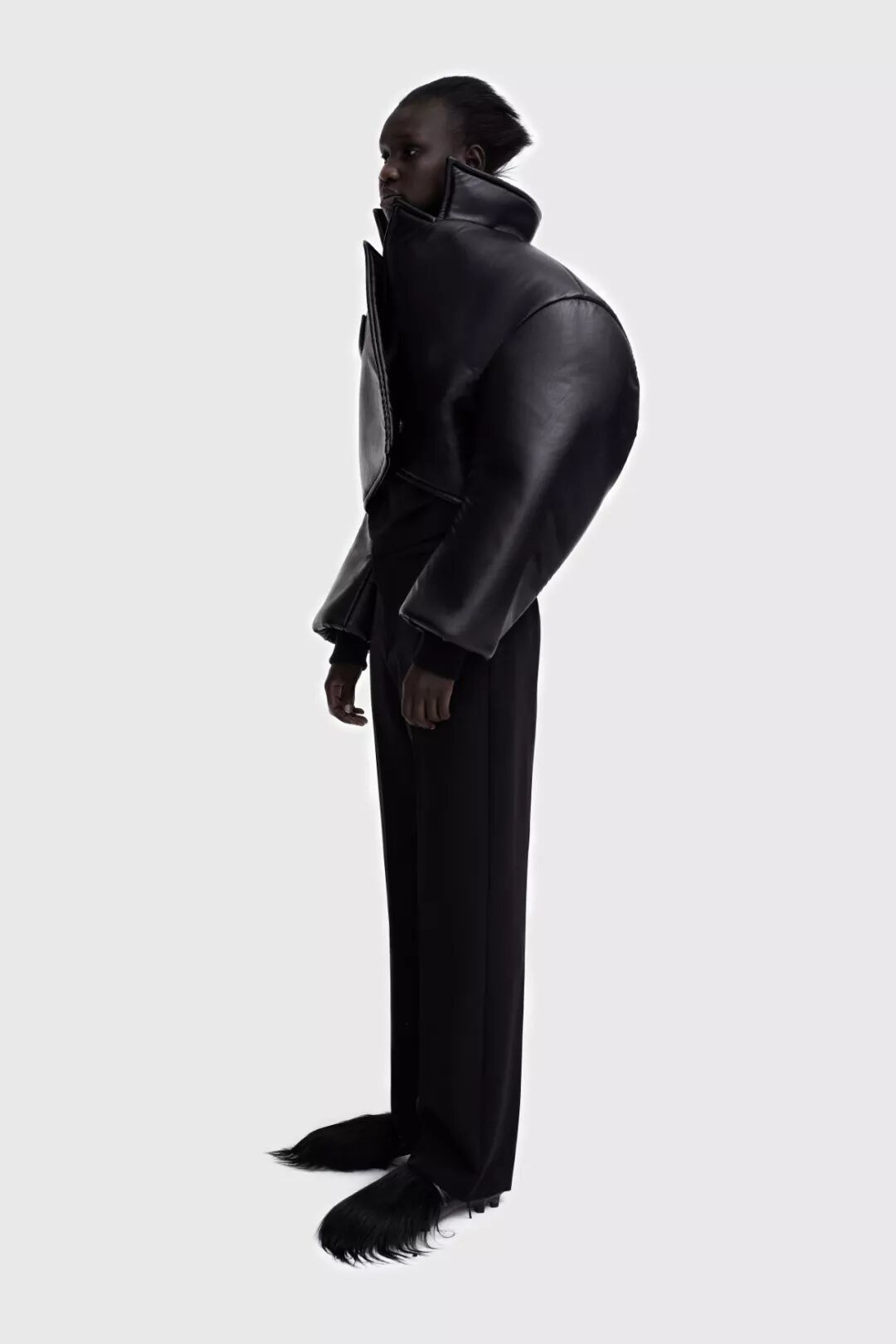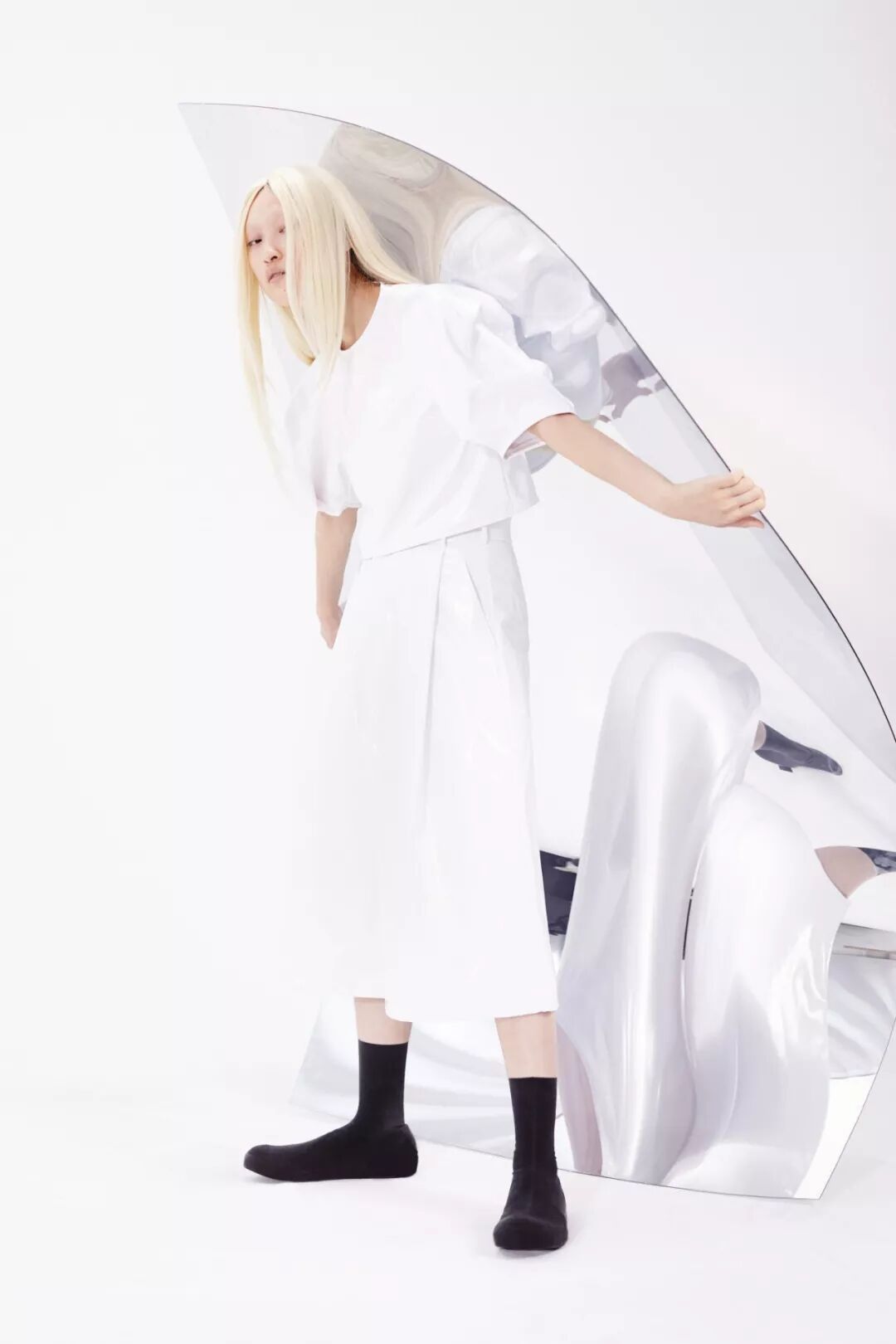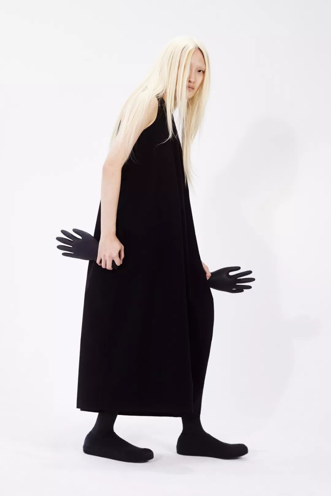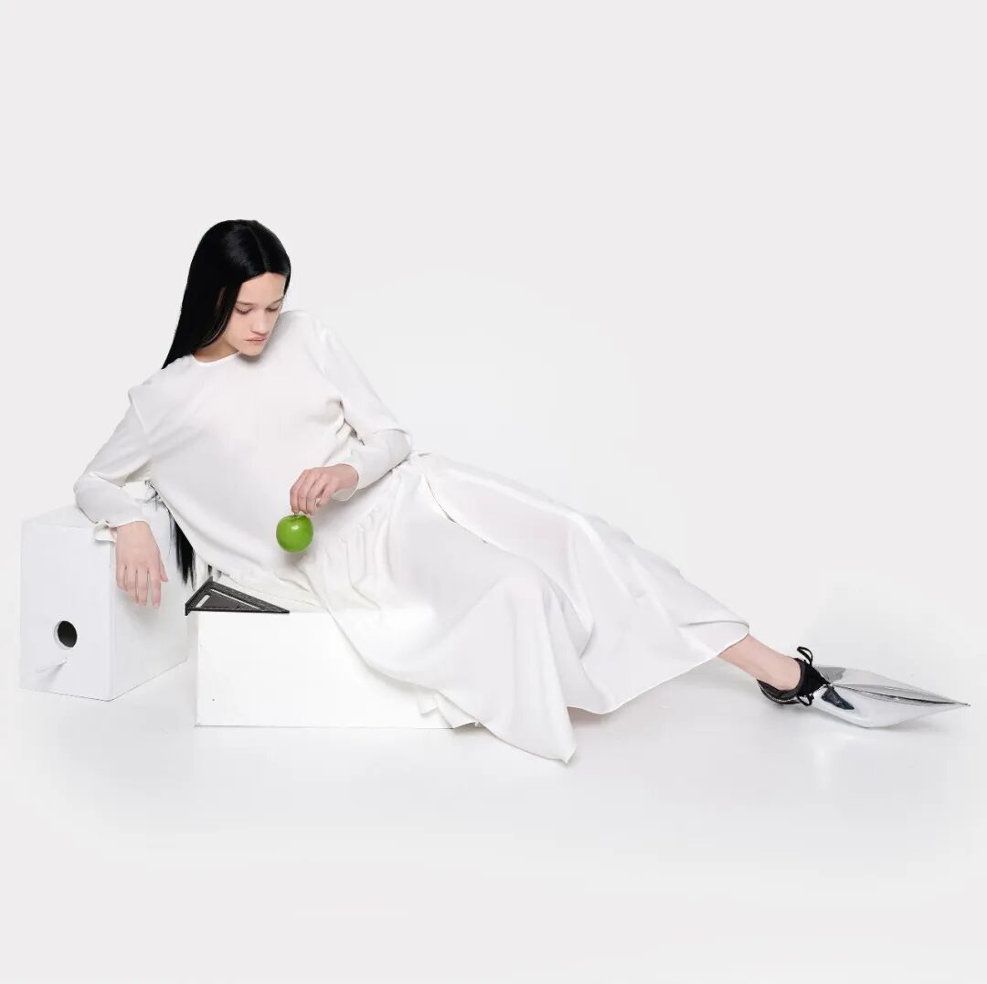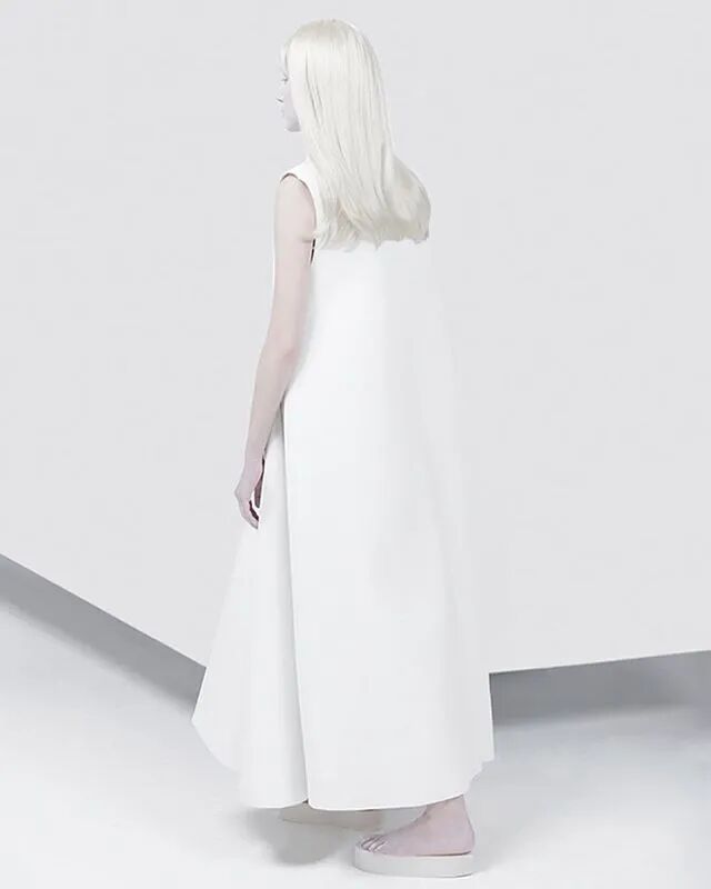 设计师Melitta Baumeister的作品常以简洁利落的黑白色轮廓为核心,简约纯粹而直击人心。受到3D技术的启发,她以雕塑技术制编出模型,并将液态硅树脂注进了模型当中,由树脂制品的模型来塑造独一无二的时装轮廓。