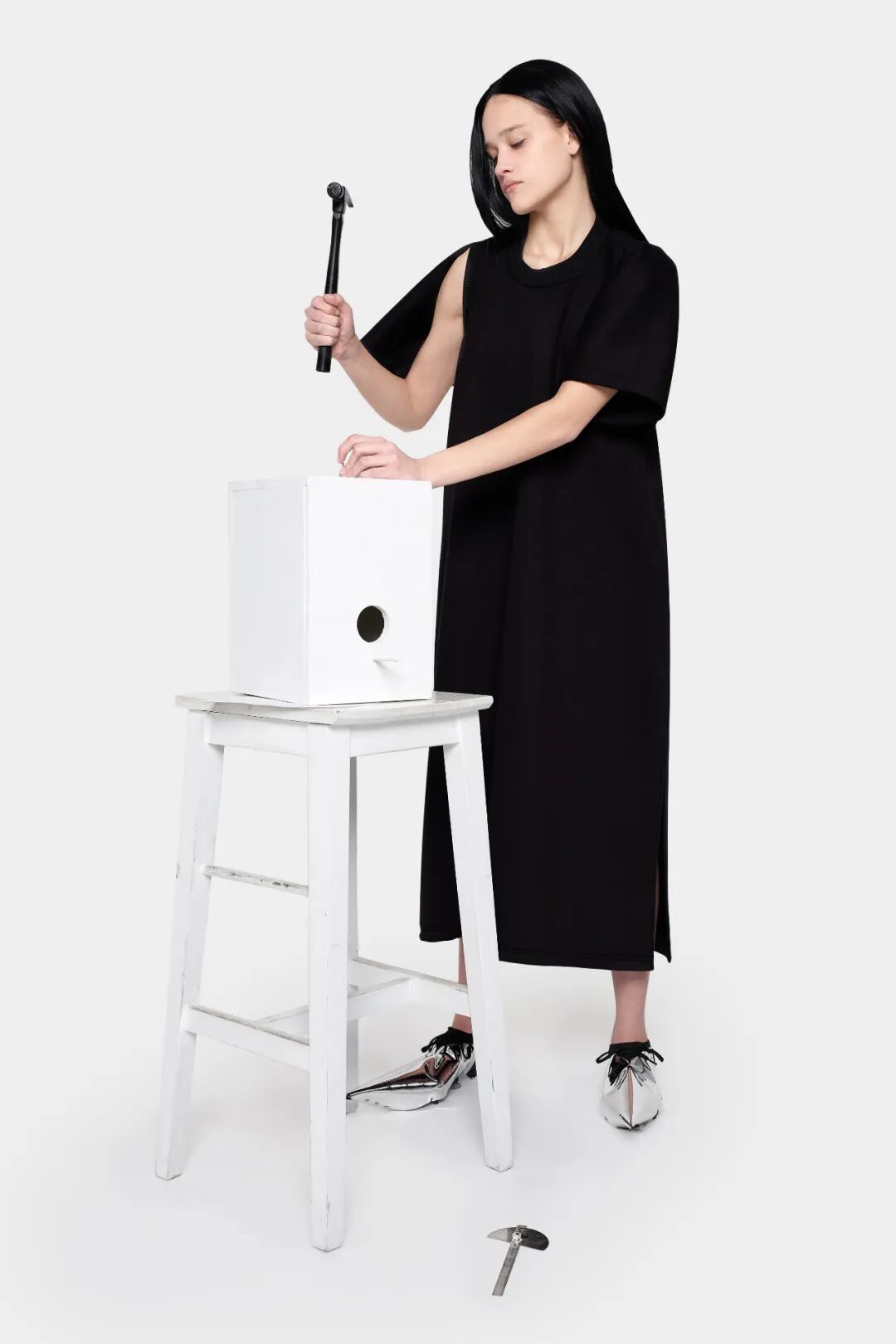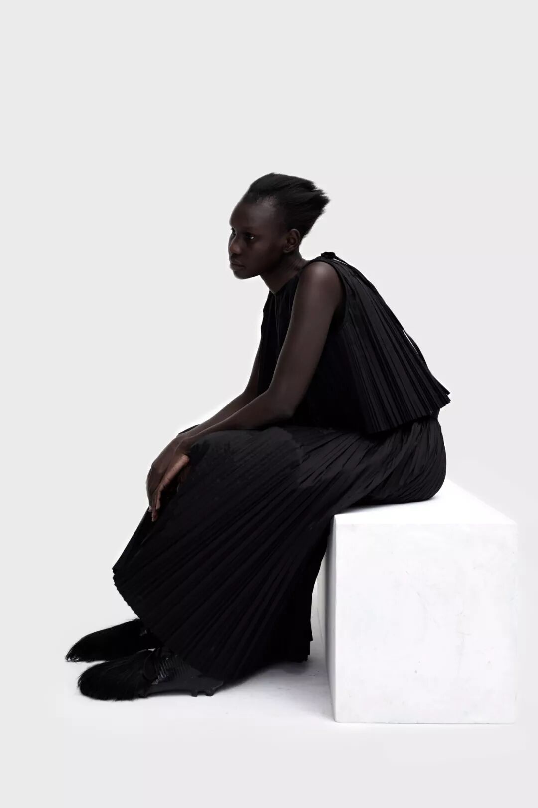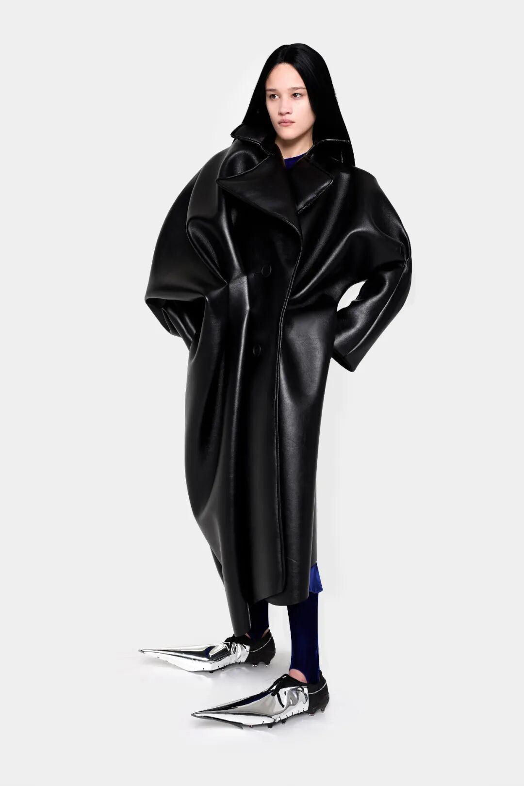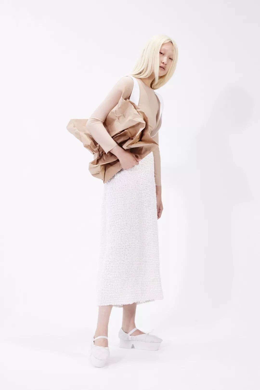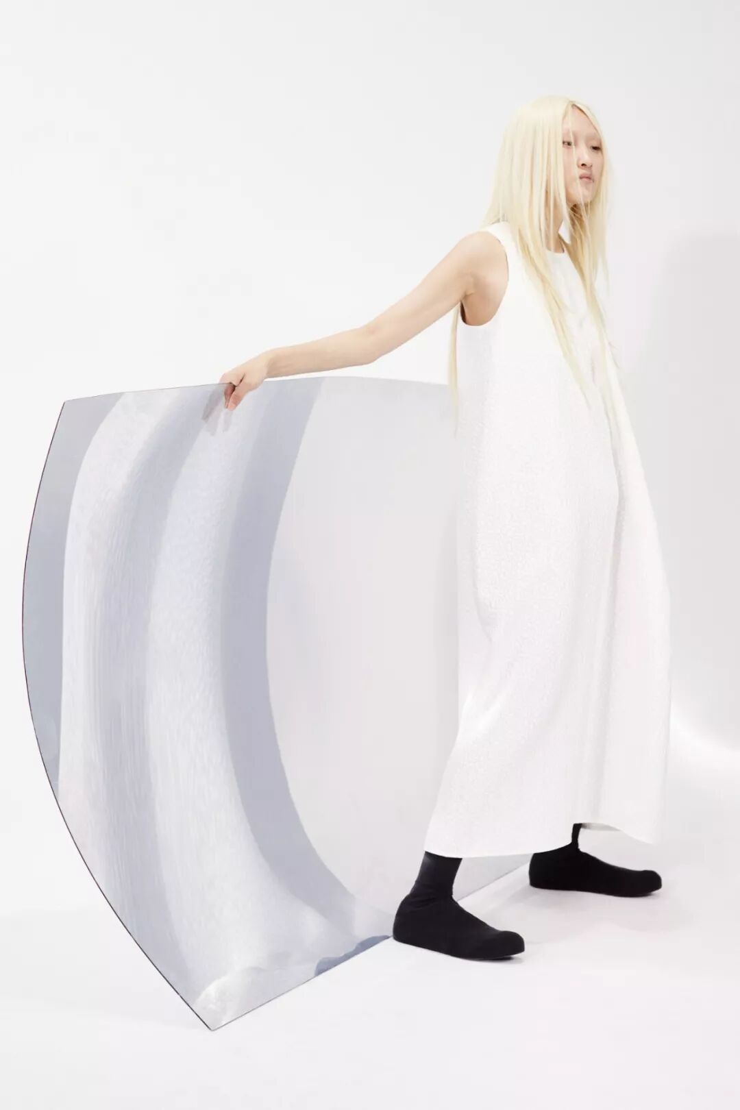 设计师Melitta Baumeister的作品常以简洁利落的黑白色轮廓为核心,简约纯粹而直击人心。受到3D技术的启发,她以雕塑技术制编出模型,并将液态硅树脂注进了模型当中,由树脂制品的模型来塑造独一无二的时装轮廓。
