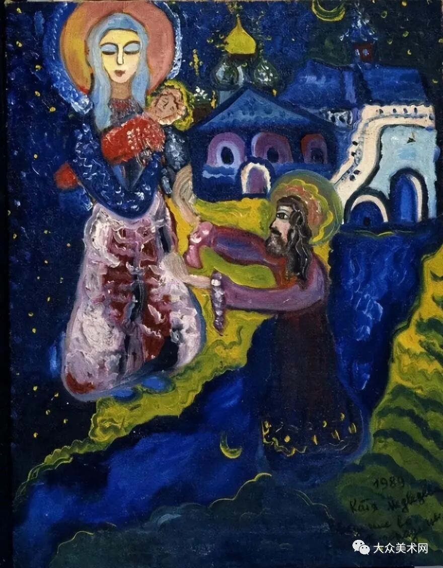 1982年,有收藏家购买了Medvedeva的画作,并带到了夏加尔处,夏加尔看了赞赏有加,说道:“她也喜欢色彩,就像我一样”。