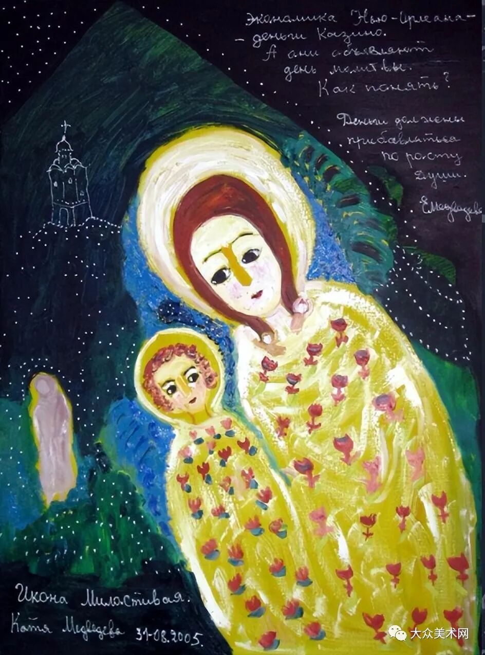 Medvedeva的画作带着孩童的野蛮、天真、无拘无束,拥有着“纯洁开放的灵魂”,甚至你可以读到令人感动的虔诚。