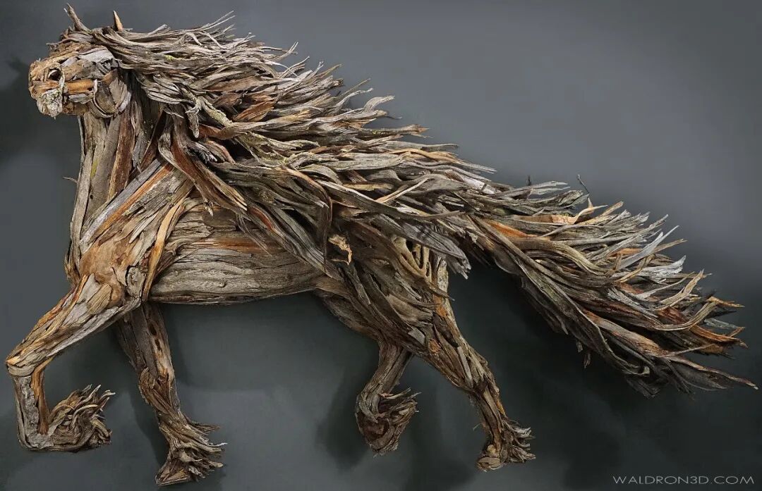杰森·沃尔德隆赋予了木头一种活力,他的每一个动物雕塑都好像拥有生命感,有着浓郁的原始气息。接下来,我们就一起欣赏这位艺术家用木头和金属垃圾,拼合而成的雕塑作品吧。