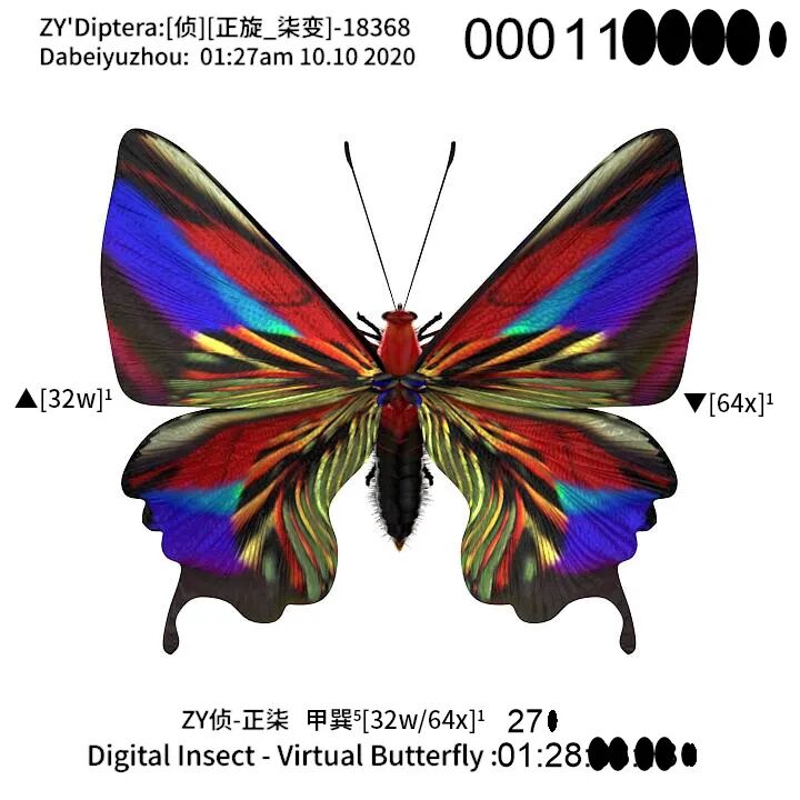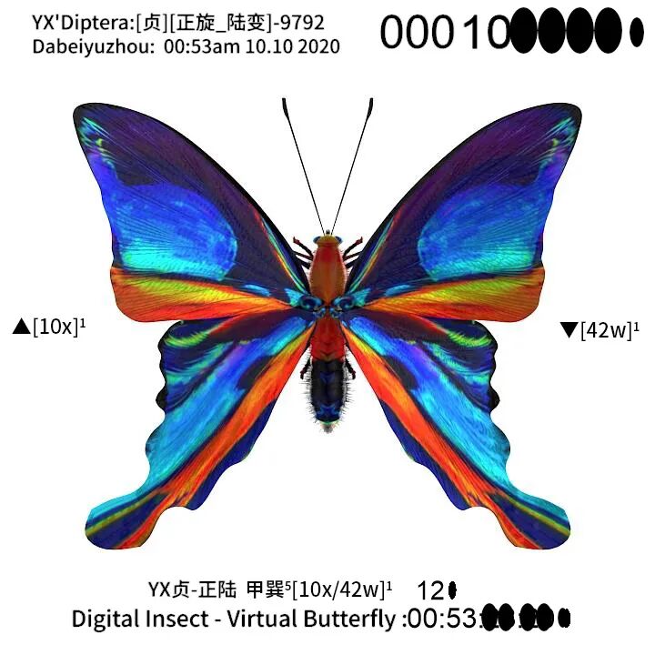 算法报以惊喜,每一只迥然不同的蝴蝶身上,都诠释着他抽象的语境和审美体系,舞动着他不同时期一直变化着的欲望和情绪。