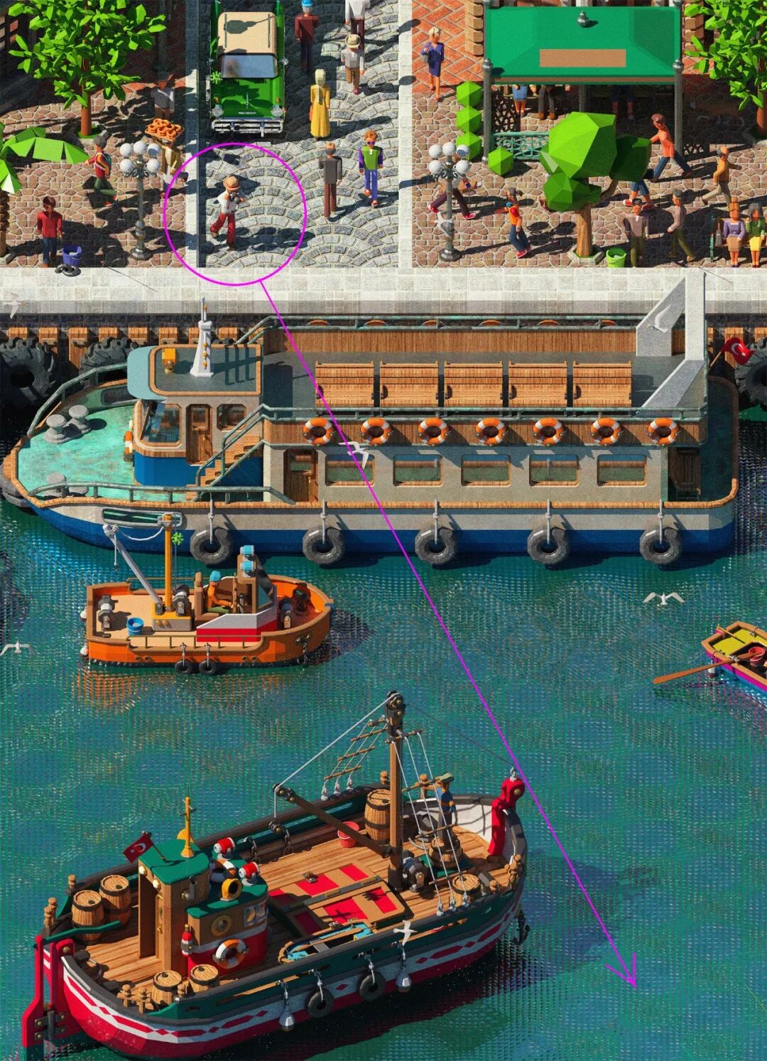 虽然说每一个场景都画得很丰富,标志性的地标和一些彩蛋都有出现,但体积和画面表现依旧无法跟塔里克的《分形的伊斯坦布尔》相提并论。