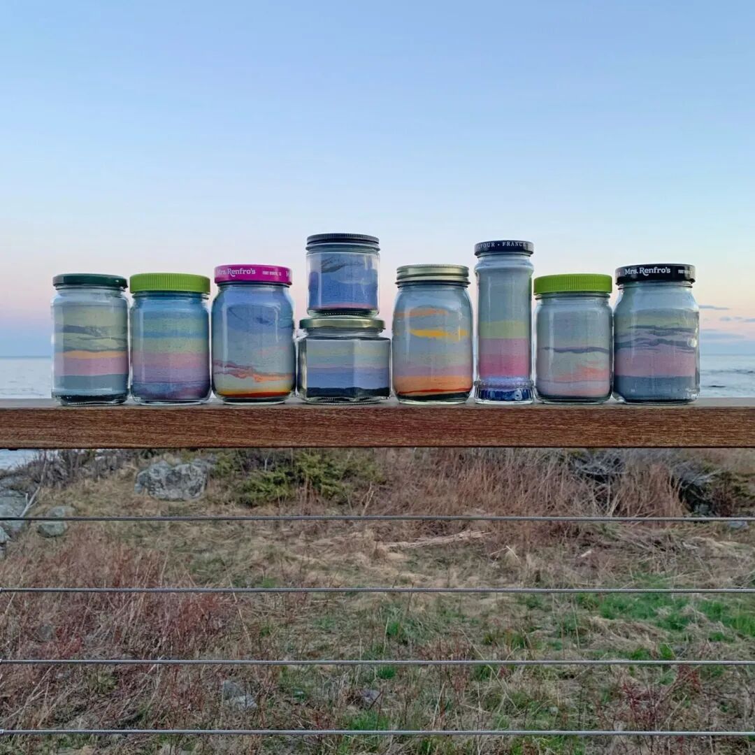 在卡莉·格洛文斯基的手中,一捧沙变成了绘画材料,她用手工着色的沙子“画”出了壮观的夕阳美景,细腻的色调层次,和完美包裹的漩涡,这位艺术家将她目睹的令人惊叹的落日场景,再现到我们的面前。她把落日装进了瓶子里,独特的“日落罐头”美到人心醉。