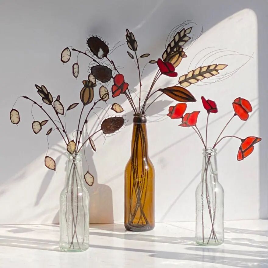 据了解,萨曼莎·耶茨在很多年前就开始学习“彩色玻璃”艺术,目的就是创造美丽的玻璃花来分享喜悦和欣赏的情感。确实,舒服和谐的色彩,使这些玻璃花束带有一丝质朴感,让人浮躁的心都能平静下来,摆在那里,就带给人一种美的享受,因此,价格昂贵也不无道理了,好了,接下来我们就一起欣赏一下这位艺术家用嘴吹出来的玻璃花束吧。