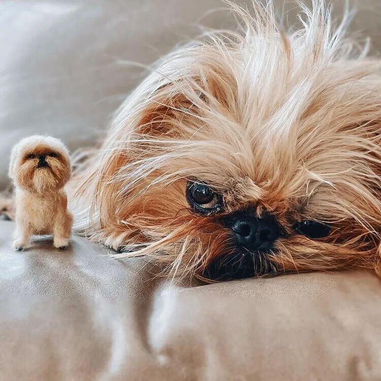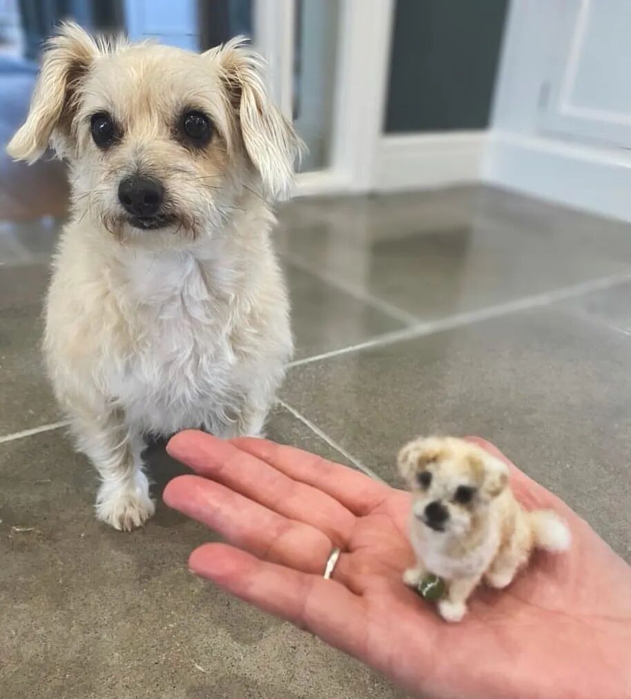 随着时间推移,让她的毛毡制作工艺越来越好,逐渐演变成我们看到的样子,完美的复刻,这些宠物就像是被缩小灯照射过一样,尤其是将这些毛毡作品和宠物摆放到一起时,这些毛毡宠物变得异常可爱,精彩程度也令人咋舌。