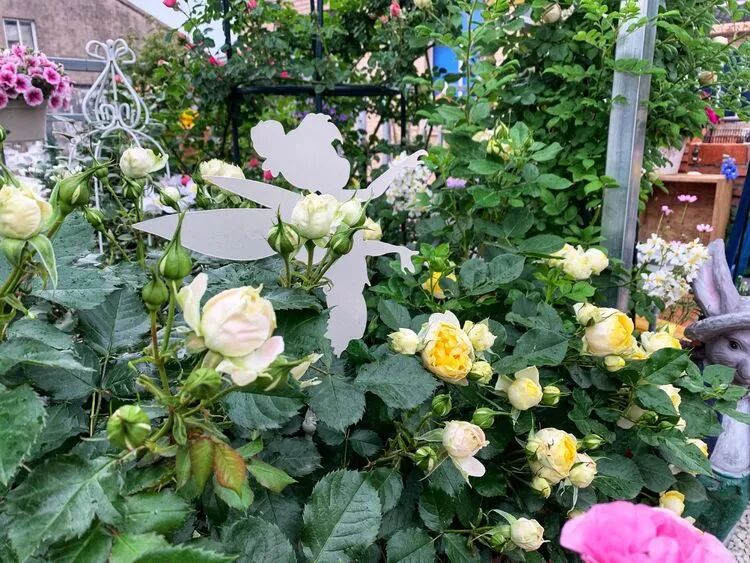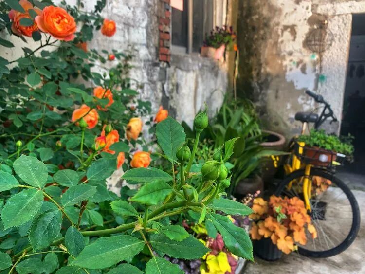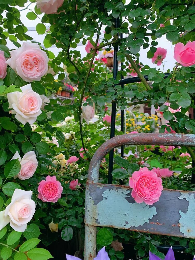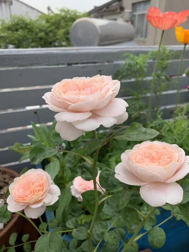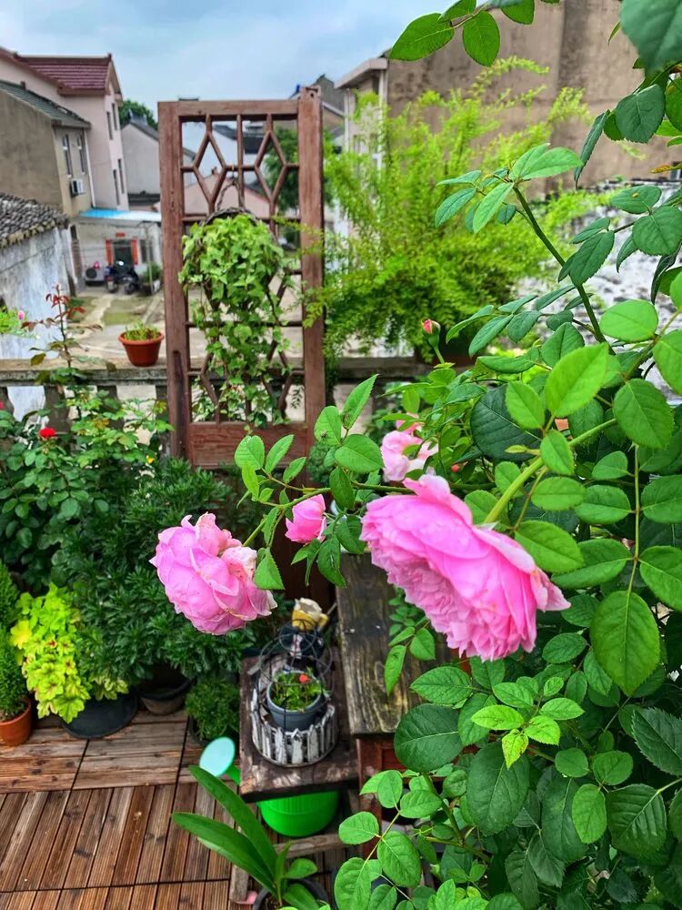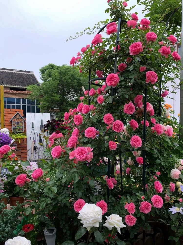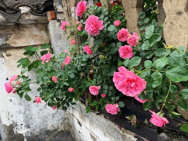 这款是几年前买的不知名月季,去年冬天给它换了基质和加了肥,没有想到在老栅栏上面一个个的都开的很热闹