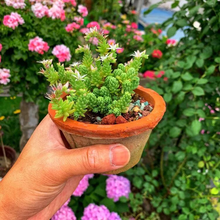 花园里的植物总是会给你不一样的惊喜,种在这个小瓦盆里面的不知名小多肉,起初种下去时老是被树上的小鸟给啄的遍体凌伤,没有想到现如今也开花了。