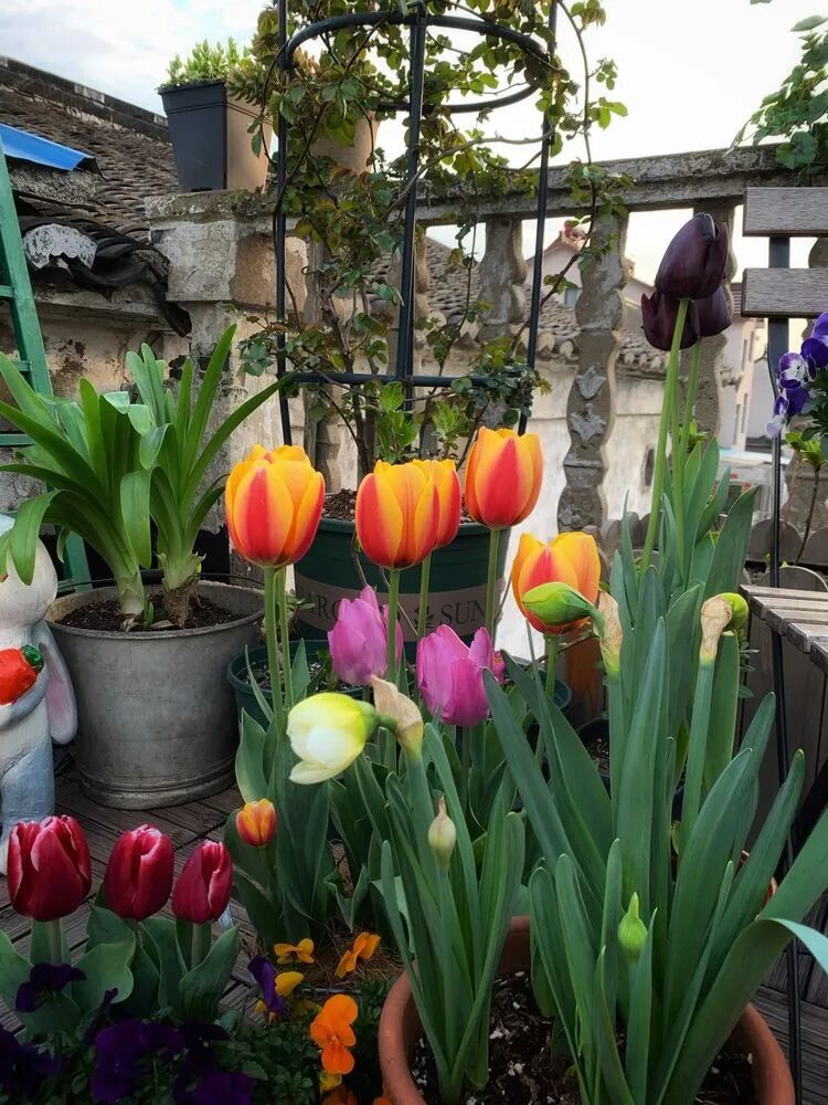 首先介绍一下整个露台分为上下两部分,起初只想打造上半个露台,朋友说下面的你肯定也会慢慢的拓展,所以就有了今天露台的面貌!也感谢小伙伴和我一起打理!都说经过了一个寒冬会迎来春暖花开,可是貌似今年的冬天一点儿也不冷,你看,露台上的早春新款,郁金香,葡萄风信子早早的就跟我来报道啦!以至于朋友们以为我生活在无锡的南方!