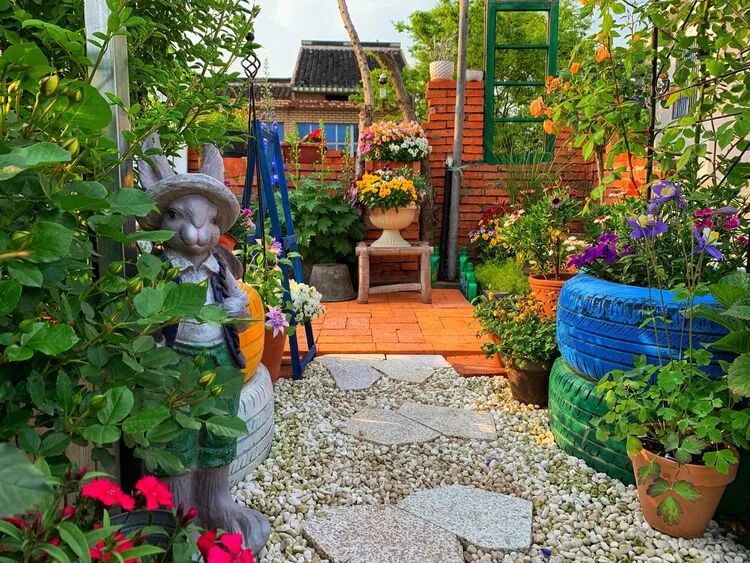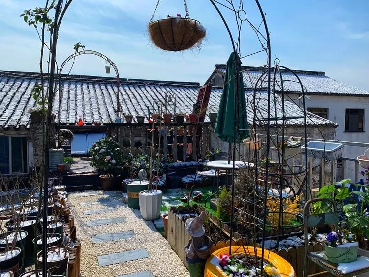 为了配合露台的景观,自己还在楼下砌了个小花坛,种上些花草!