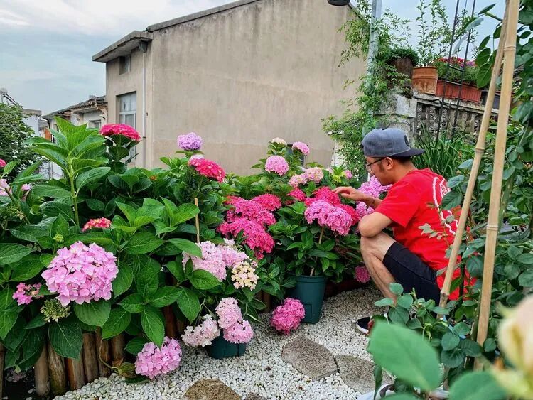 就快接近五月的尾声了,绣球们争先恐后的开放着,而我自然也不闲着,吃过晚饭走上老屋的露台上静静的享受着这个幸福的时刻!