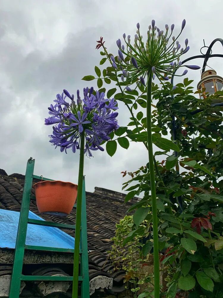 百子莲,有一种高耸入云的感觉!蓝色的花朵看着很清凉