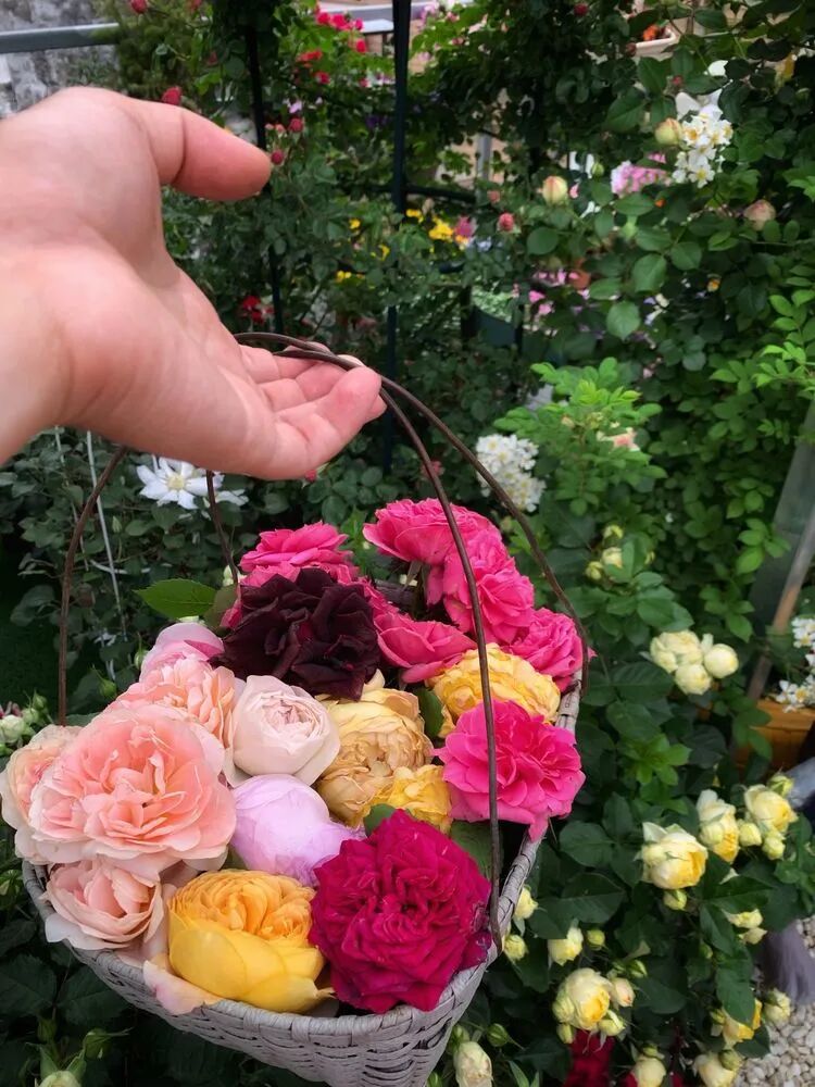 一大早的剪了一篮子的残花