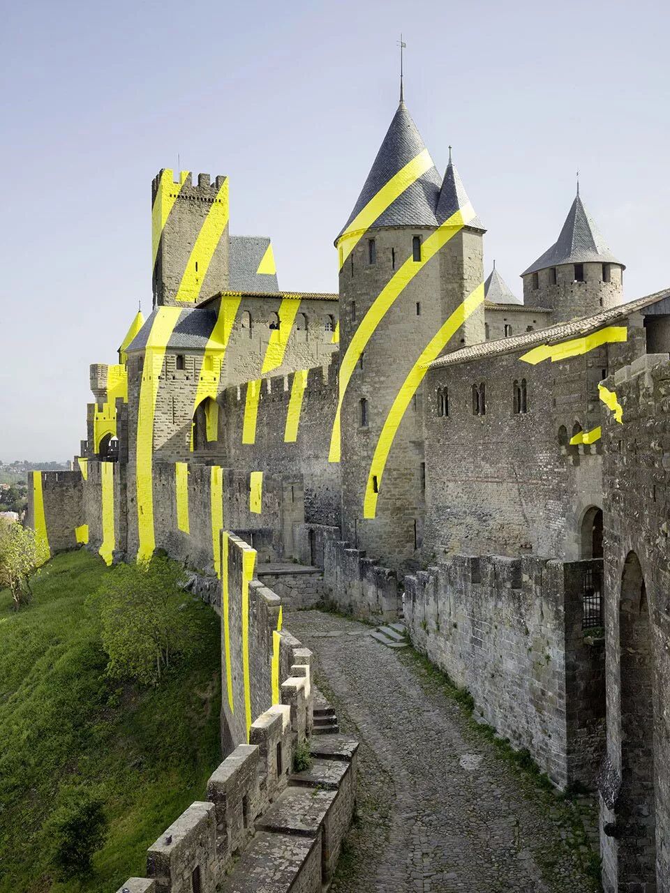 错位视觉画家费利斯·瓦里尼(Felice Varini),一位不在画布上作画的画家,他的“画布”是建筑和城市景观,比如大楼、墙体和街道。