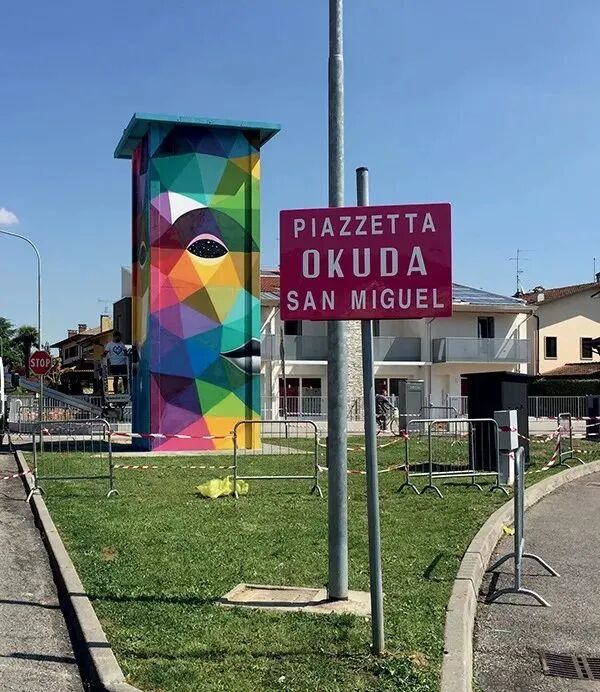 Okuda San Miguel以大型壁画、装置、绘画和雕塑的形式,利用符号化的形象,提出一些关于人类、生命和宇宙的思考,以及更为深刻的问题。他将色彩的积极能量带入城市的角落,让重复、枯燥无味的城市生活因为突如其来的色彩而变得更有趣;出自他之手的这些饱和、出众、引入注目的色彩,又完全将他轻松玩味的创意精神为我们的日常带来灵感。